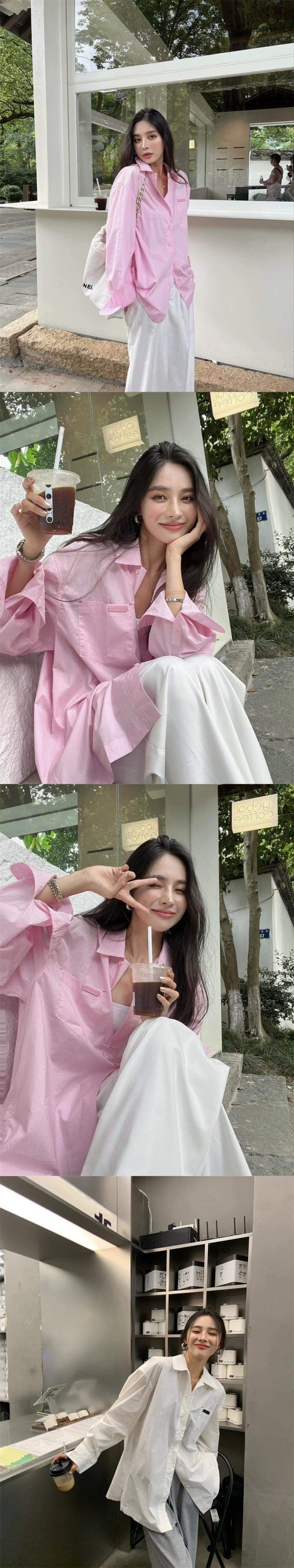 色:ピンクのシャツ,白のシャツ
