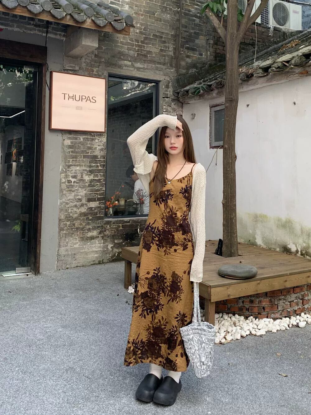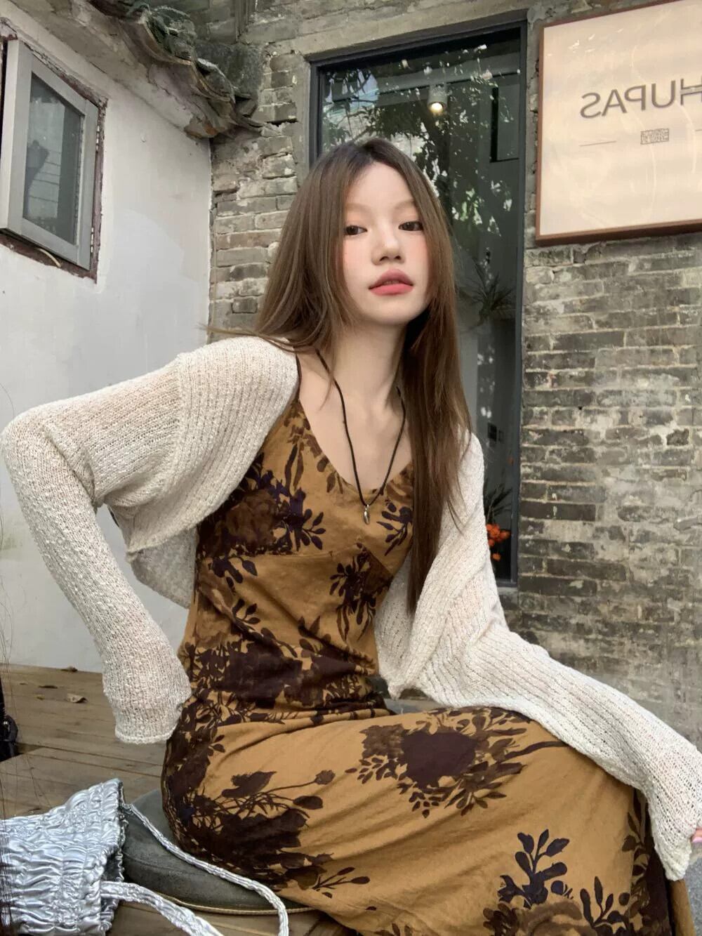 色:アプリコットのアンティークショール,チャイナ風サスペンダースカート