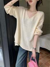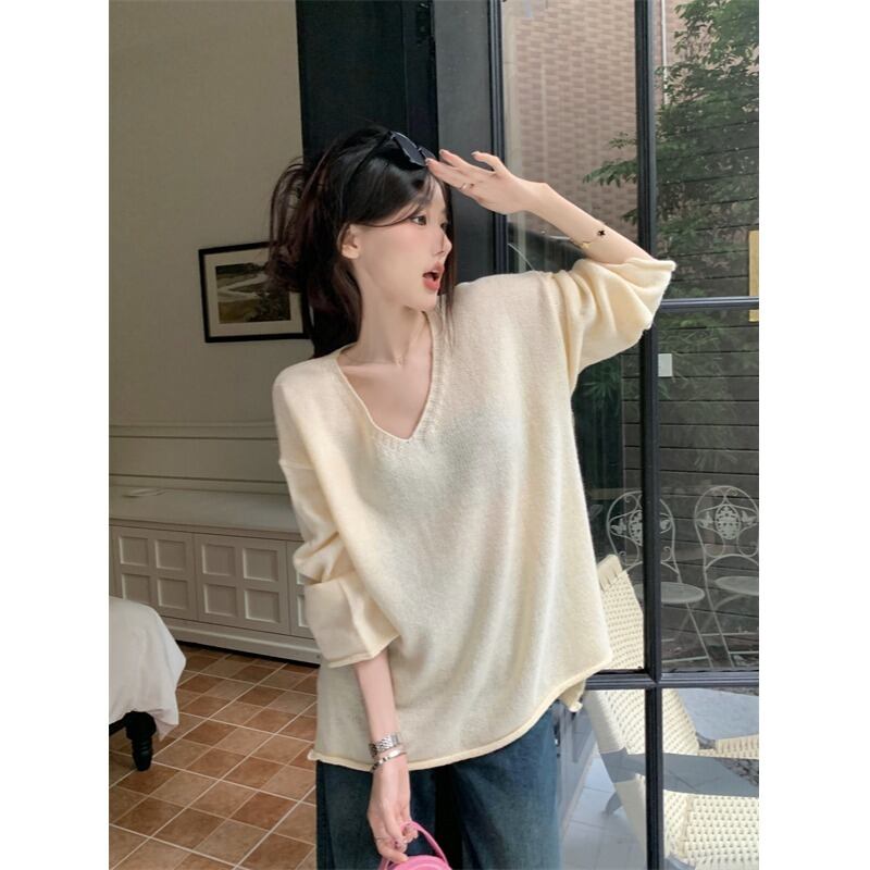 スタイルルーズ V ネックスリム長袖セーター女性秋 2023 新しい優しいアプリコット日焼け止めブラウストップ ロング オータム 秋物 Vネック 0921933722920837