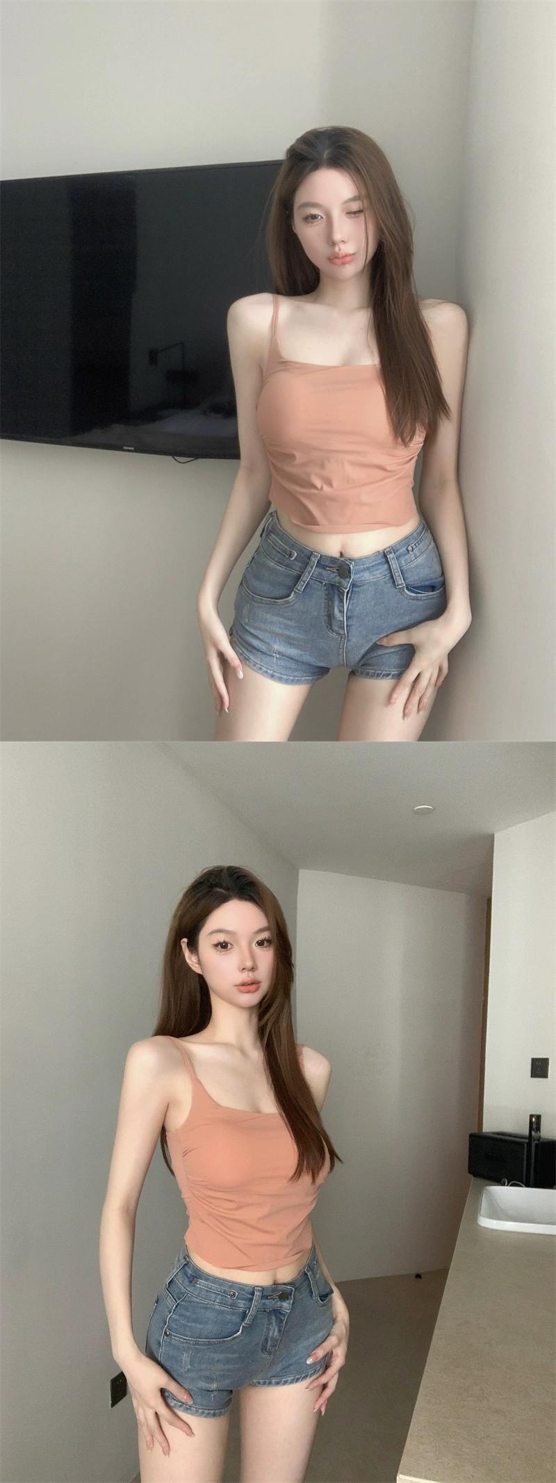 胸パッド付き無地多目的キャミソール女性の夏の 2023 新バージョン痩身インナーとアウタートップス サマー 夏物 ソリッドカラー 0921969014152246