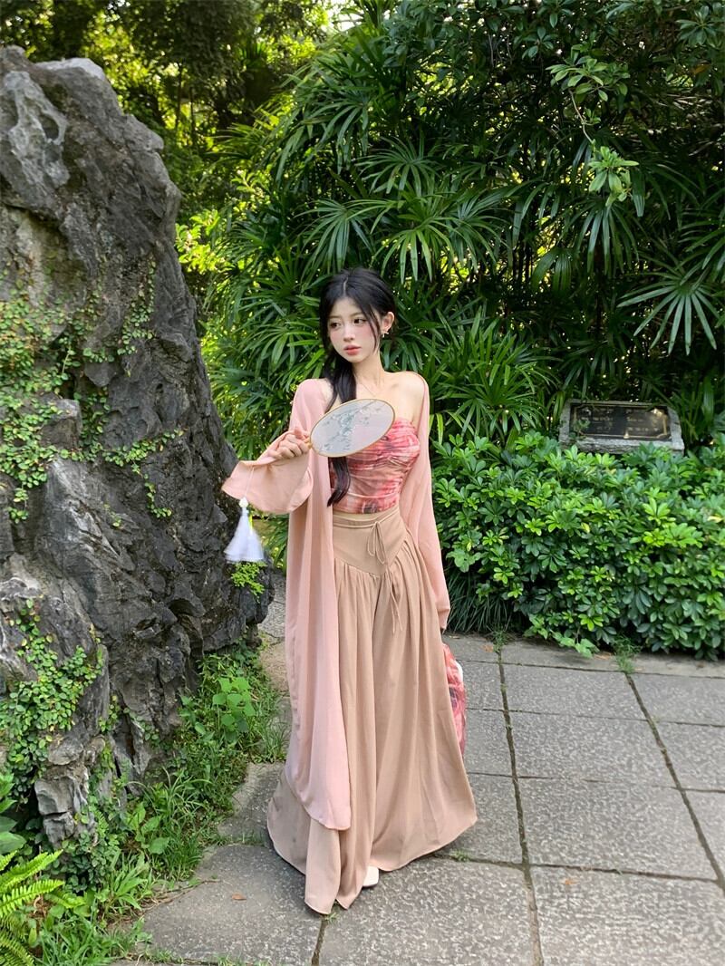 中国風の国民風のレトロな気質禅スーツチューブトップベストカーディガン女性の夏のスリーピーススカートスカート サマー 夏物 0921973360707127