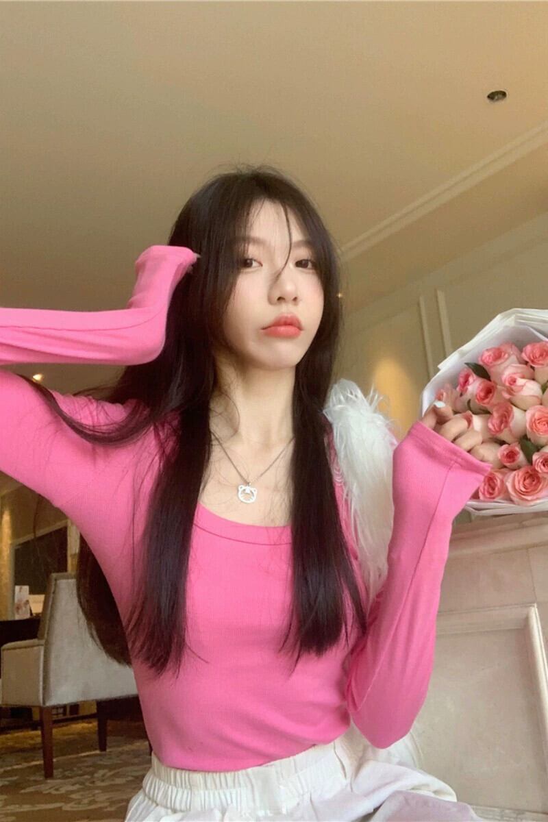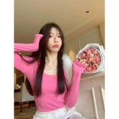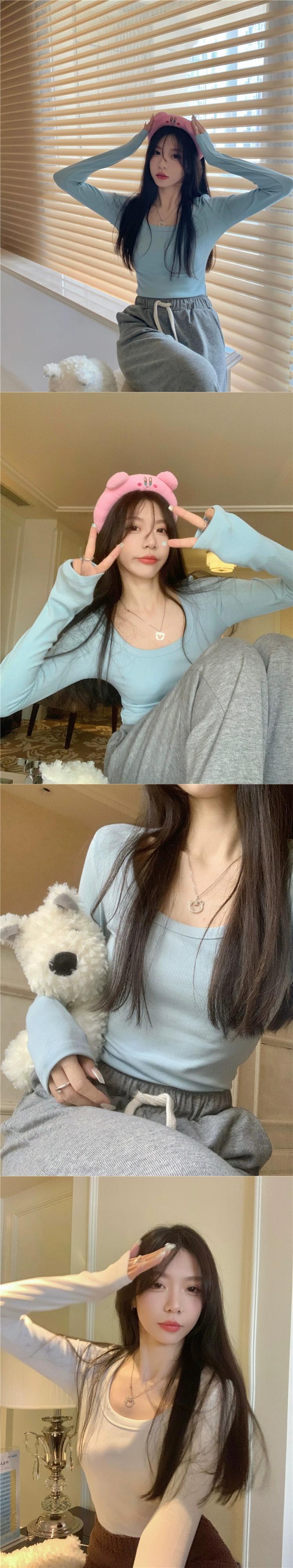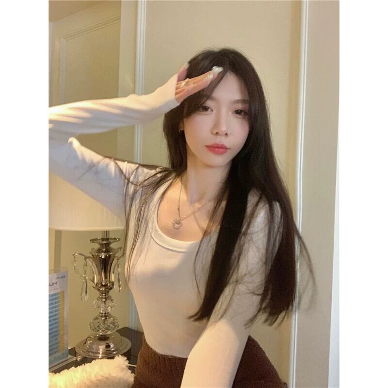 有能で多用途な U ネックプルオーバー長袖 T シャツの女性 2023 年初秋の新しいショートスタイルのスリムフィットと気質の日焼け防止トップ ロング オータム 秋物 Tシャツ 0921985191978503