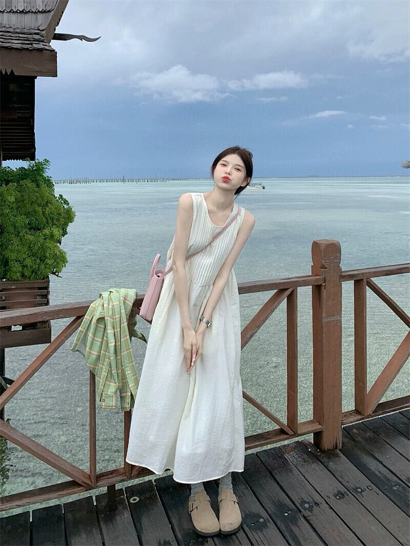 優しい風ノースリーブベストドレス女性の夏の 2023 新デザインスリムスリムミドル丈スカートトレンディな サマー 夏物 0921993267951679