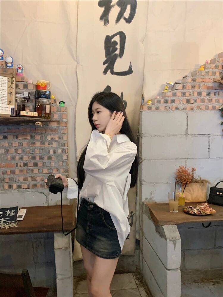 ニッチデザイン背中の開いたリボンシャツジャケット女性の秋の気質ルーズミッドレングスカーディガン長袖トップ ロング オータム 秋物 0921947909334095