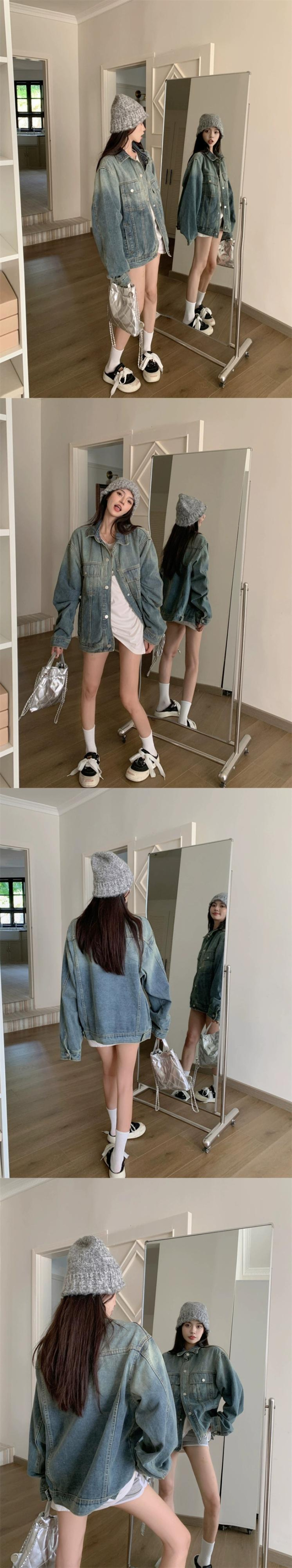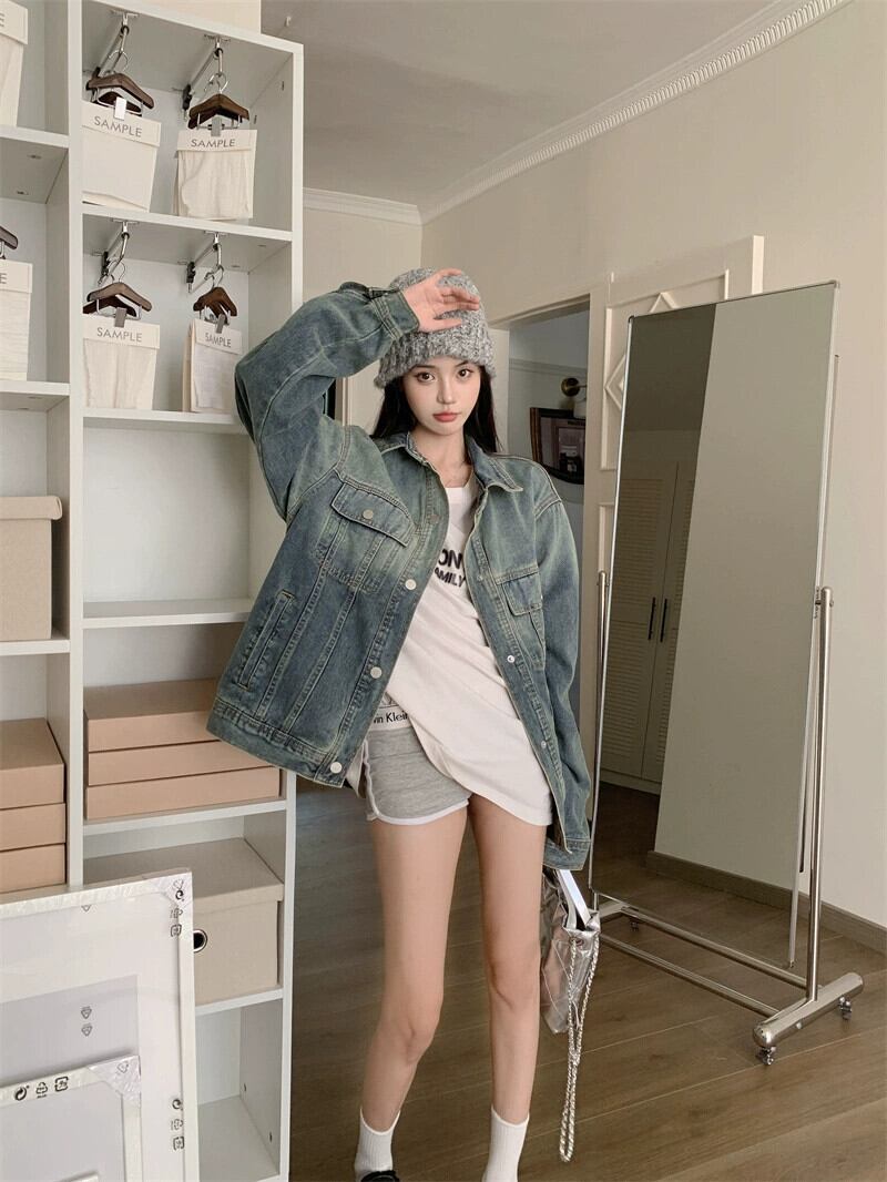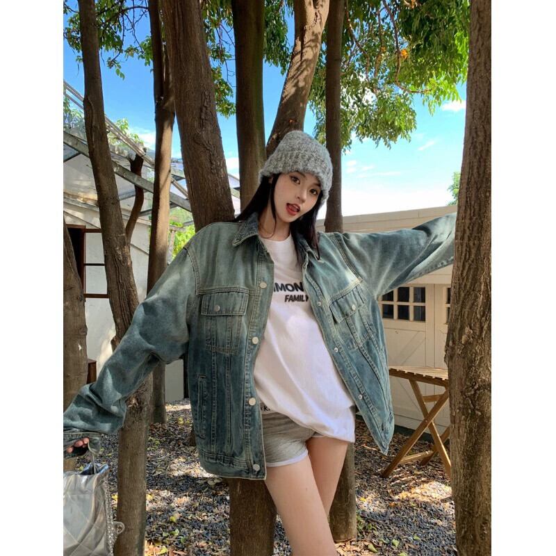 ウォッシュ加工レトロ長袖デニムジャケット女性秋 2023 新しいスタイルルーズスリムデザイントップ ロング オータム 秋物 0921930487068103