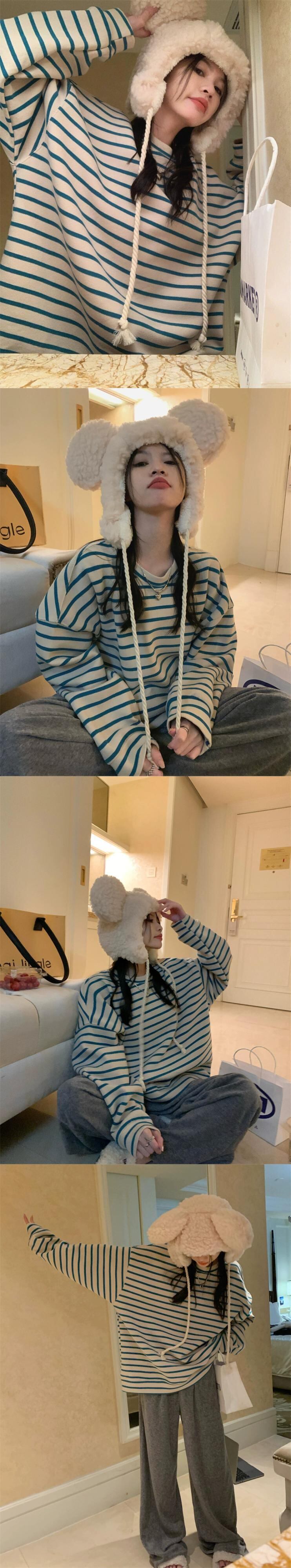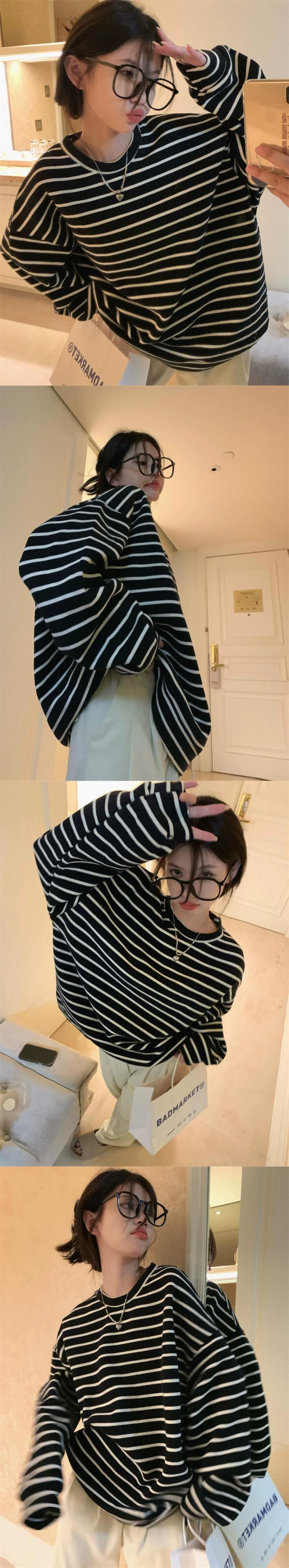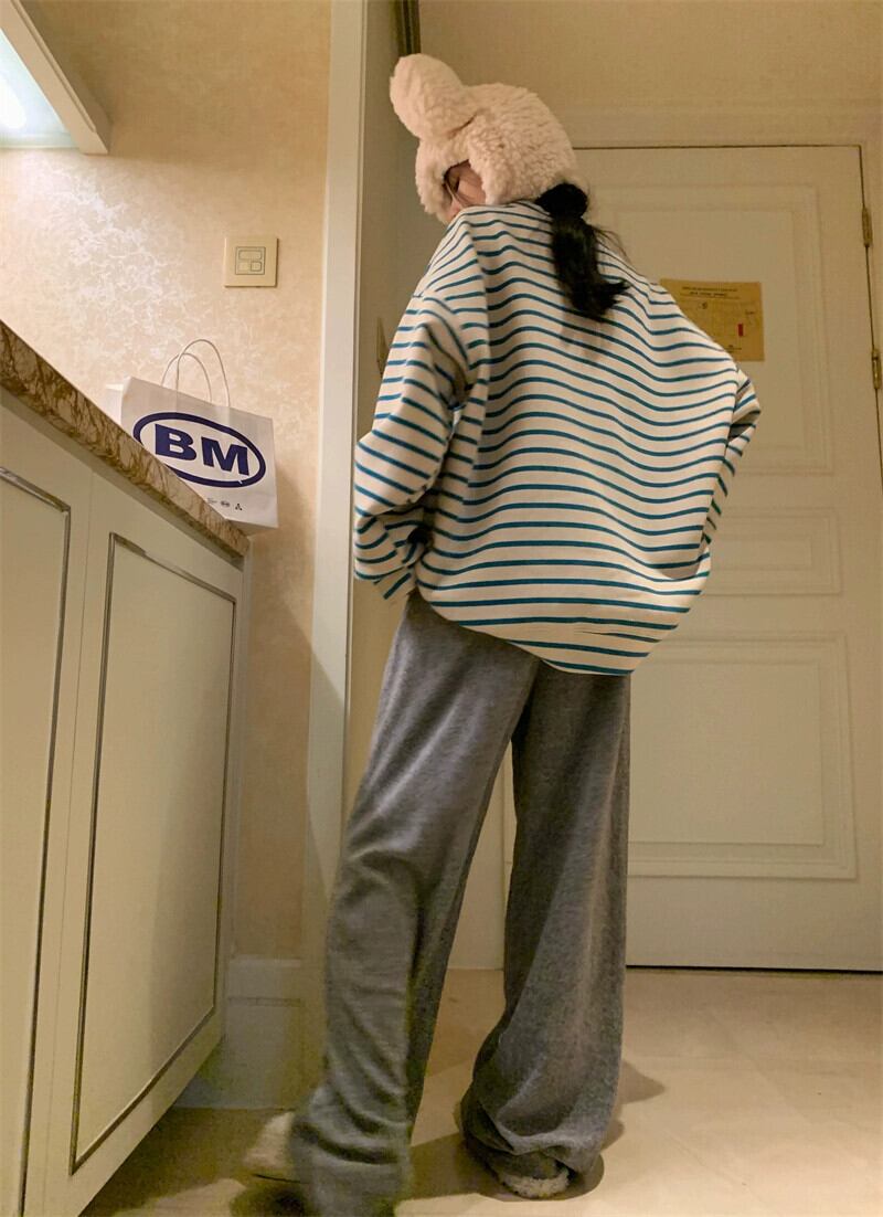 スタイルカレッジスタイルルーズ長袖ストライプスウェットシャツ女性秋 2023 新しい多用途プルオーバーラウンドネック肥厚トップ ロング オータム 秋物 Oネック 092197293011178