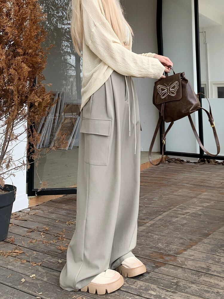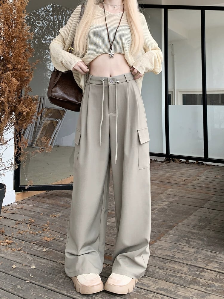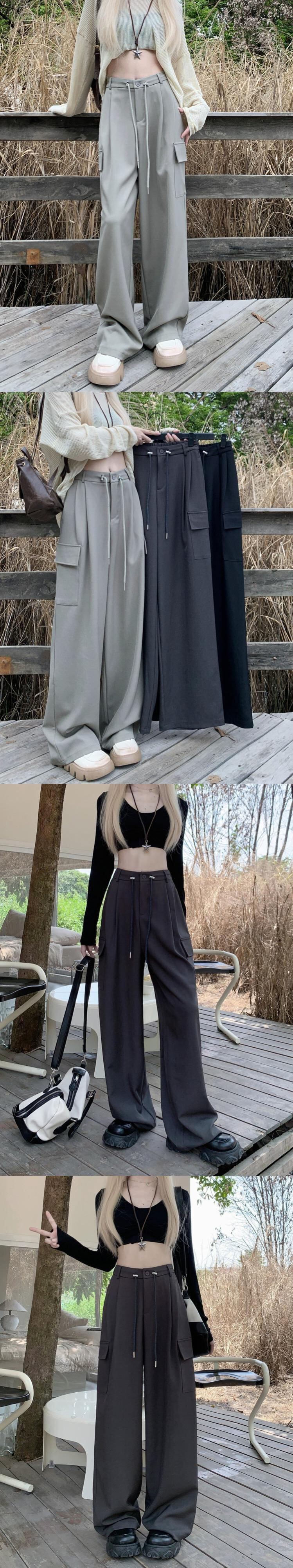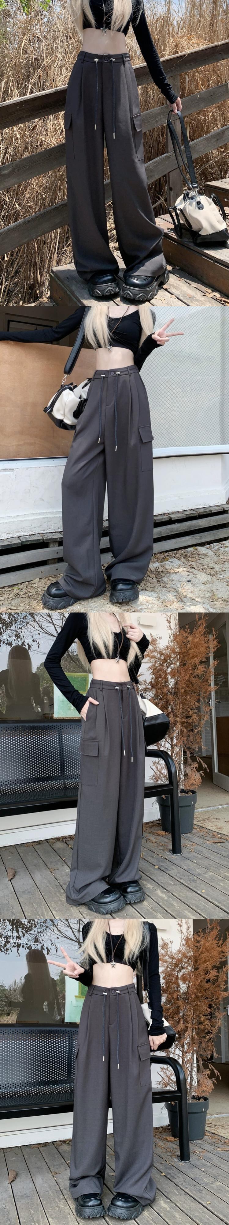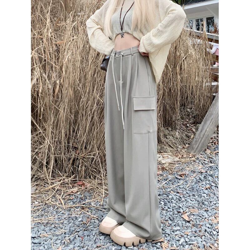 ホットガールウエストスリム巾着パンツ女性の秋 2023 多用途ルーズワイドレッグ床拭き作業服パンツ オータム 秋物 ワイドパンツ 0921986711458136
