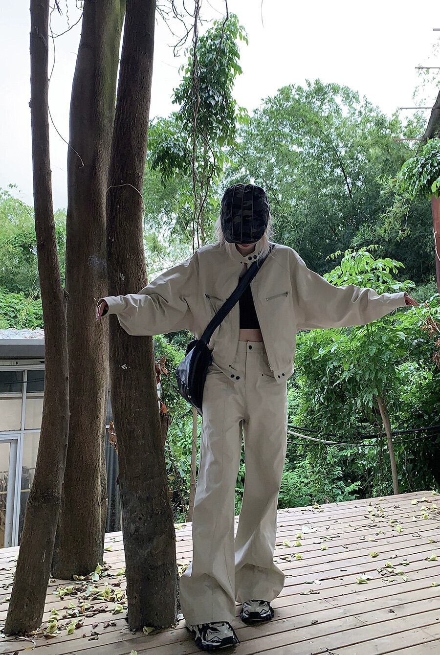 アメリカンレトロストリートスタイルスーツ女性の秋 2023 長袖ジャケット作業服床拭きパンツ 2 点セット ロング オータム 秋物 092192836253233