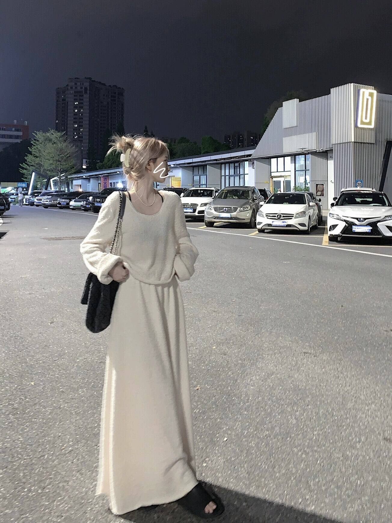 怠惰なスタイルのファッションスーツスカート女性の初秋 2023 新しい弾性ウエストスリムスカート長袖トップ 2 点セット ロング エラスティック 伸縮 オータム 秋物 0921988790208405