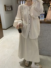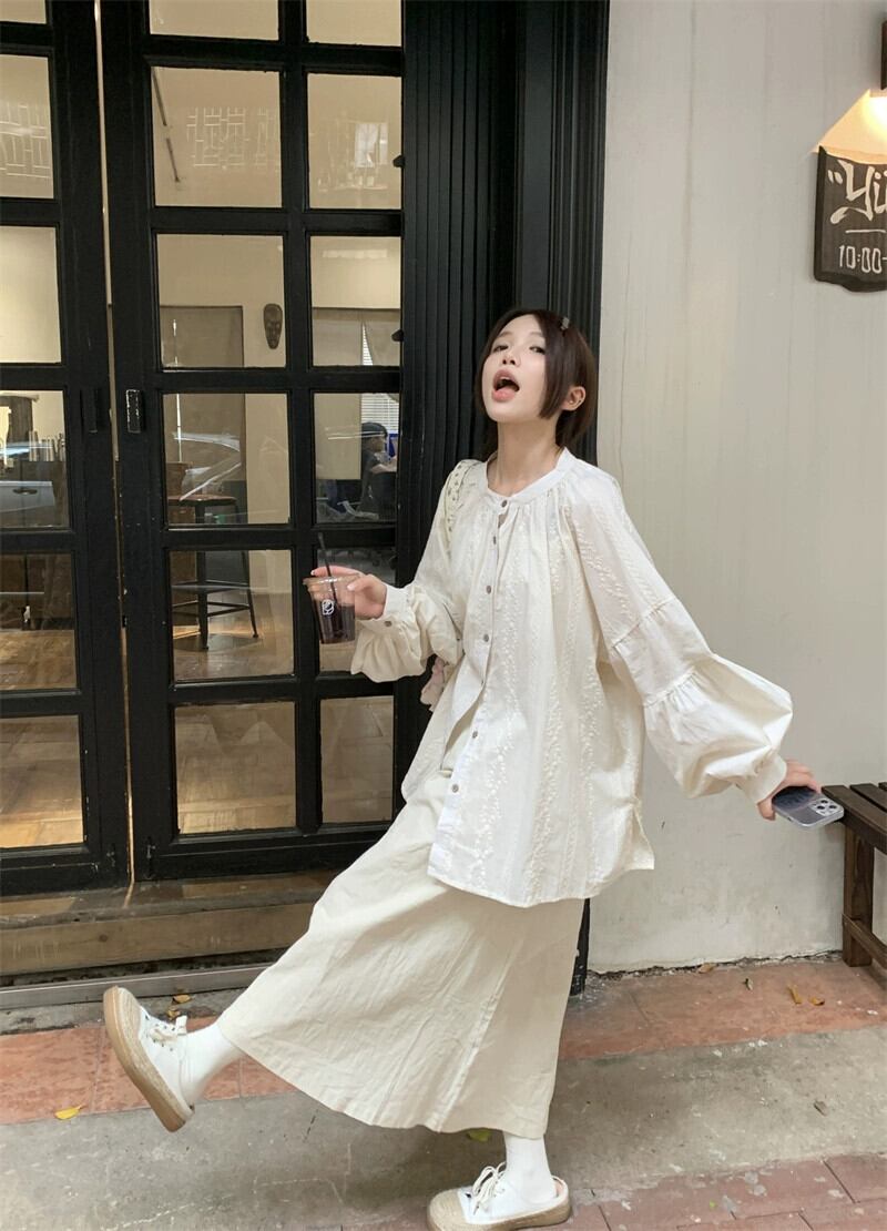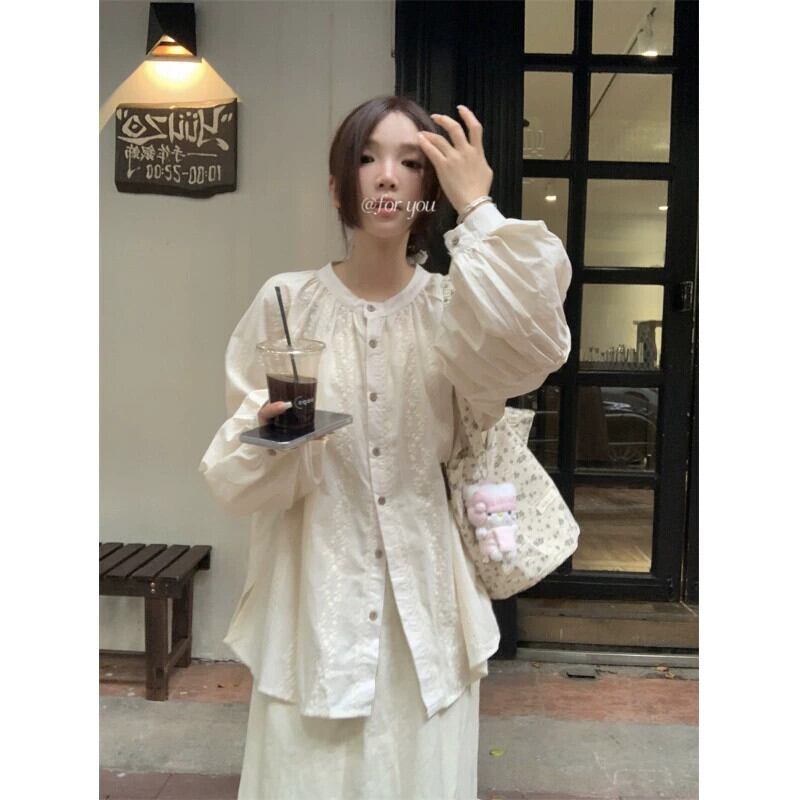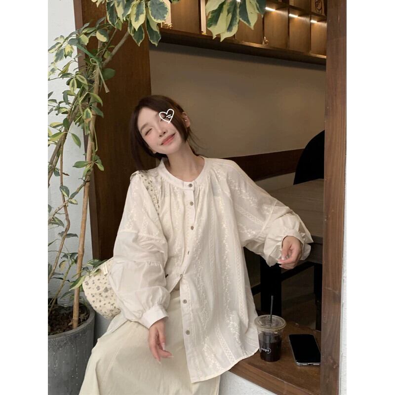 ese パフスリーブレース長袖襟シャツ女性秋 2023 新しいスタイル優しいスタイルルーズスリムカーディガンシャツ ロング オータム 秋物 0921960744498907