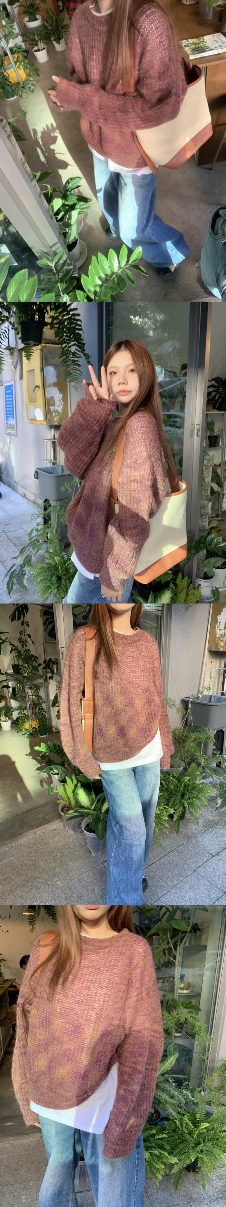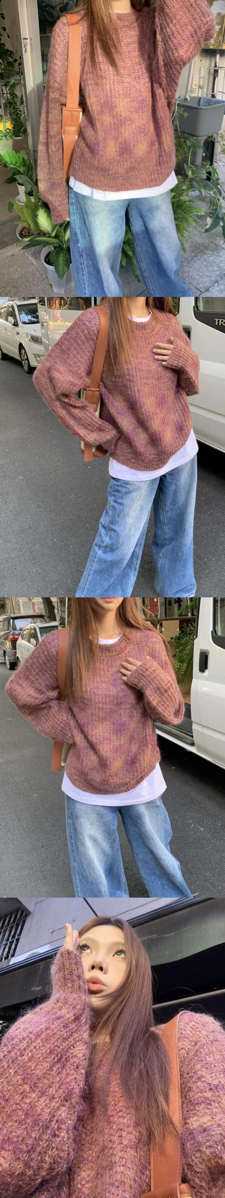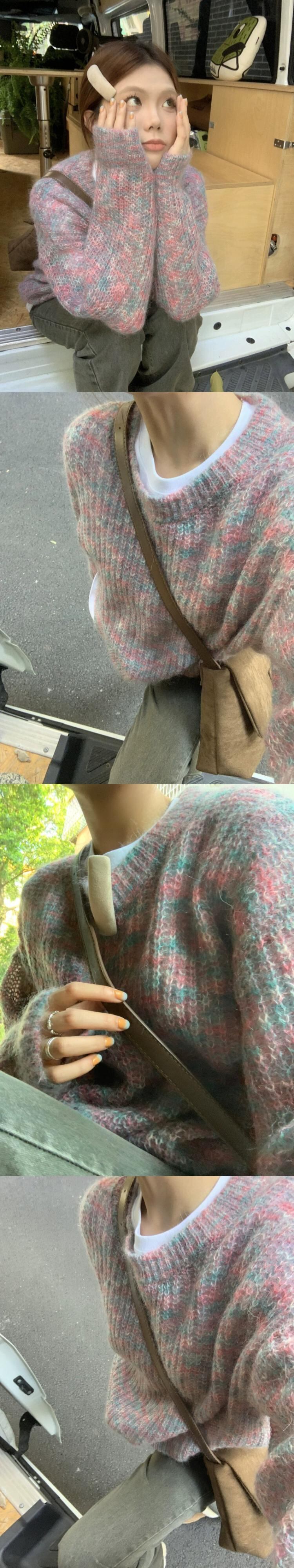 怠惰なスタイル模造モヘアセーター女性秋 2023 新デザインルーズでスリムなラウンドネックプルオーバーセーター オータム 秋物 Oネック 0921972612652010