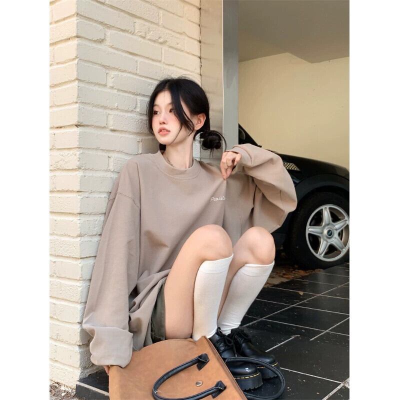 ルーズインデザイン長袖プルオーバースウェットシャツの女性の秋2023新しいスタイルの特大黒トップ ロング ブラック オータム 秋物 0921932155018070
