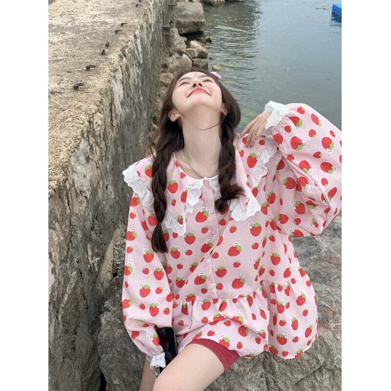 甘いスプライス菌レースドールカラーシャツ女性秋 2023 新年齢削減多用途プリントルーズシャツ 大人ガーリー スウィート キュート カジュアル オータム 秋物 0921963017207272