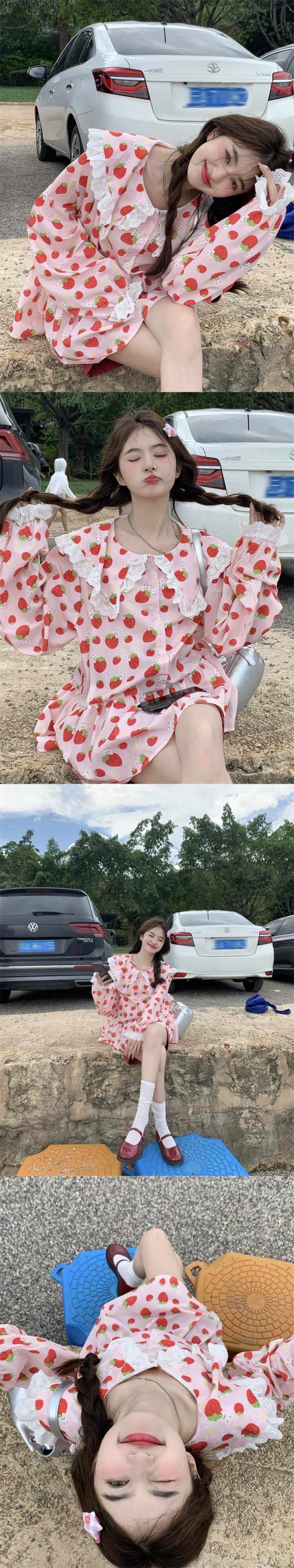 色:ピンクフローラルシャツ,ピンクのストロベリーシャツ