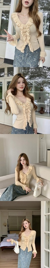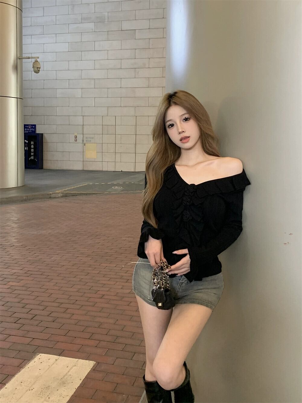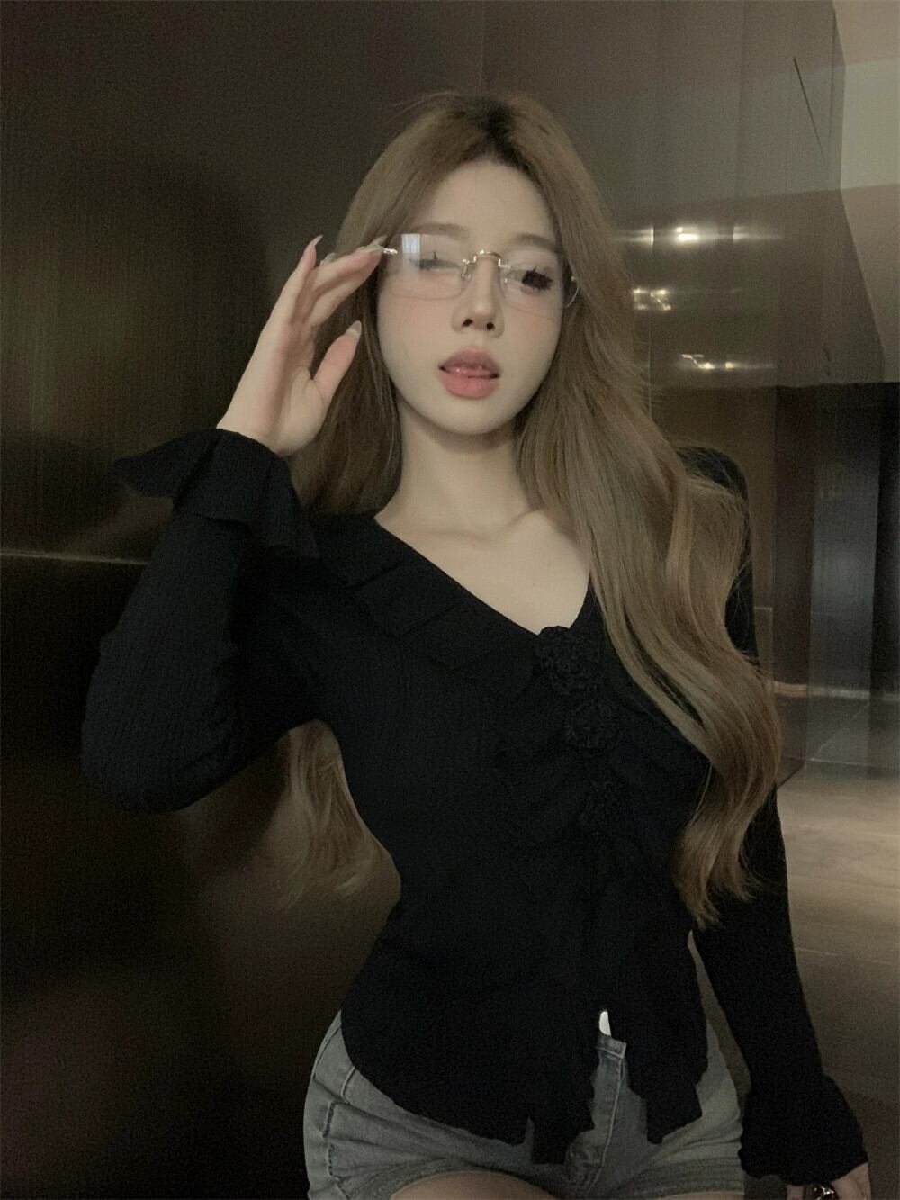 ニッチフレンチ真菌 V ネック長袖セーター女性 2023 秋の新しいスリムフィットデザイントップ ロング オータム 秋物 Vネック 0921955885091732