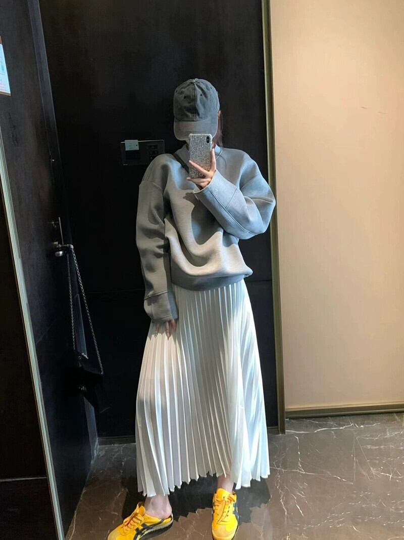グレー怠惰なスタイルルーズラウンドネック長袖トレーナー女性秋 2023 新しいシックなオールマッチプルオーバートップ ロング オータム 秋物 Oネック 0921980369043454