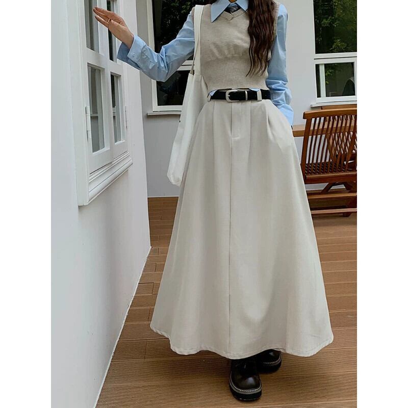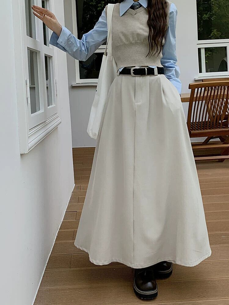 気質有能なソリッドカラーのスーツスカートの女性の秋 2023 ウエストスリム多用途 A ラインロングスカート オータム 秋物 Aライン 0921936858656816