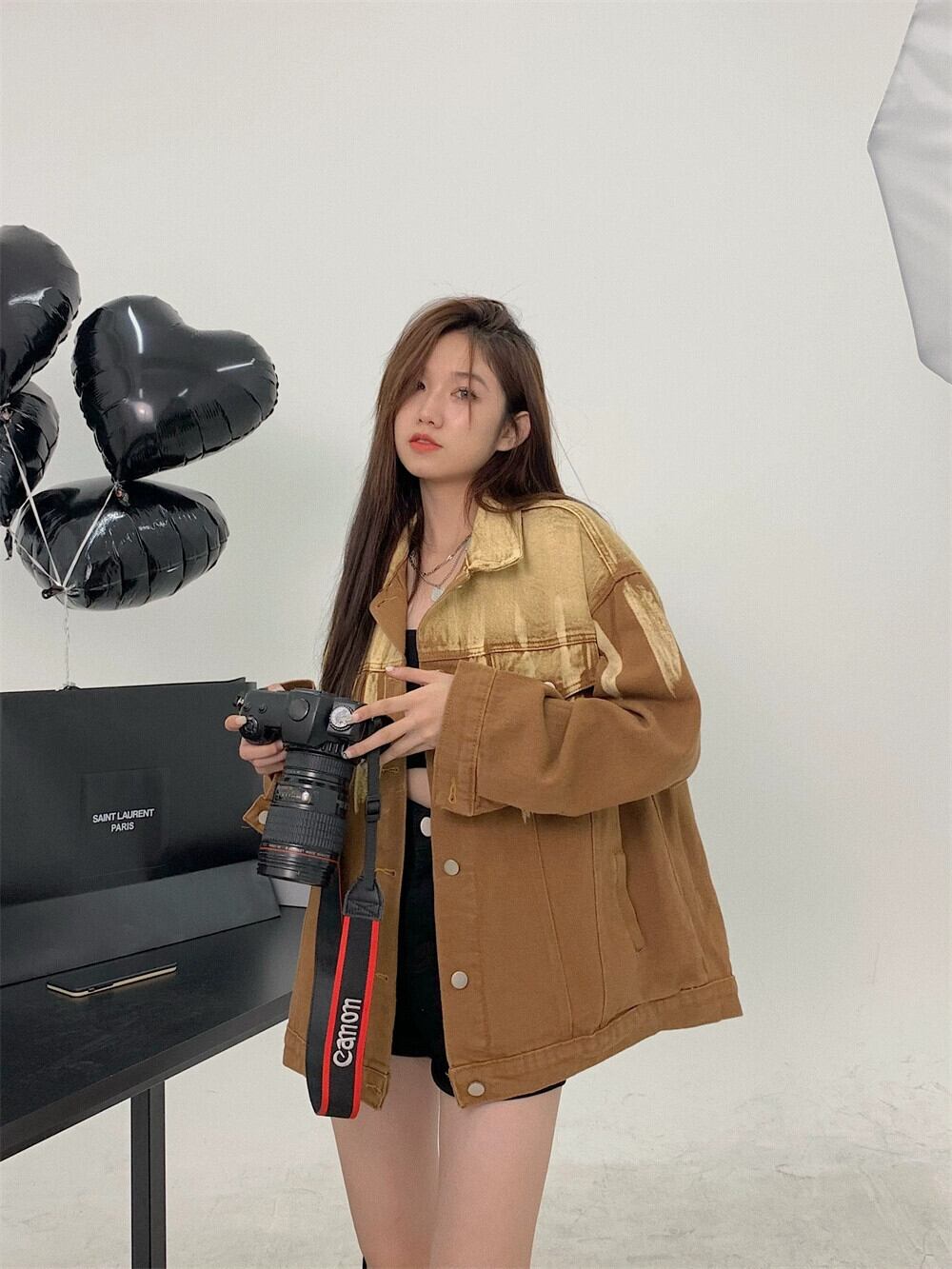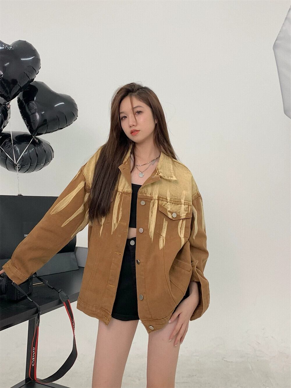 レトロウォッシュファッション絞り染めデニムジャケット女性秋 2023 新しいアメリカンニッチミッドレングスルーズトップ オータム 秋物 0921970115061492