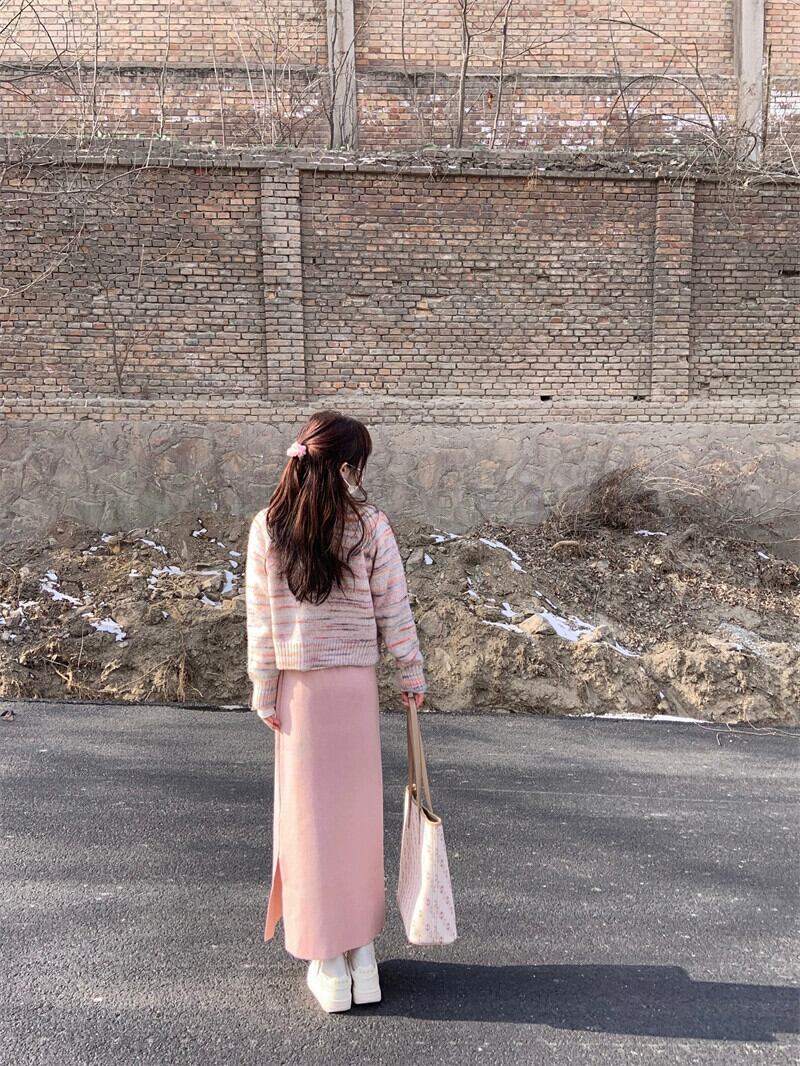 甘くて優しいスタイルのスーツの女性 2023 秋新色ストライプセーターカーディガンニットスカート 2 点セット 大人ガーリー スウィート キュート カジュアル オータム 秋物 0921918125374691