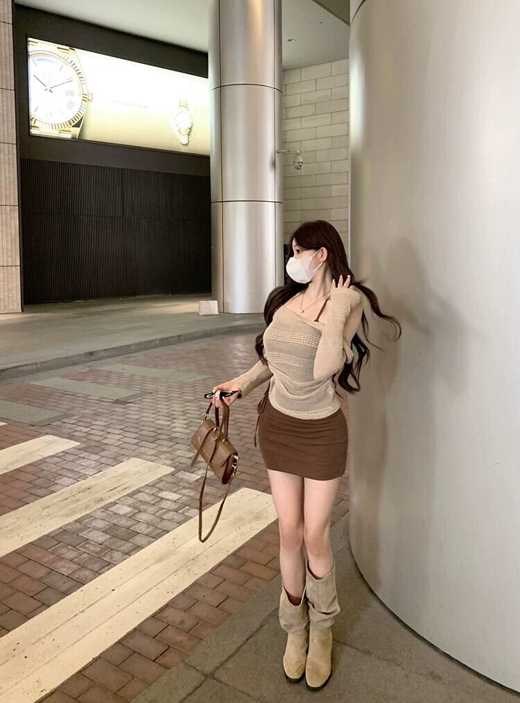 ニッチ純粋な欲望スタイルのスーツの女性の秋 2023 新しい長袖ニットブラウスホルターネックドレス 2 点セット ロング オータム 秋物 ピュア 0921986887411154