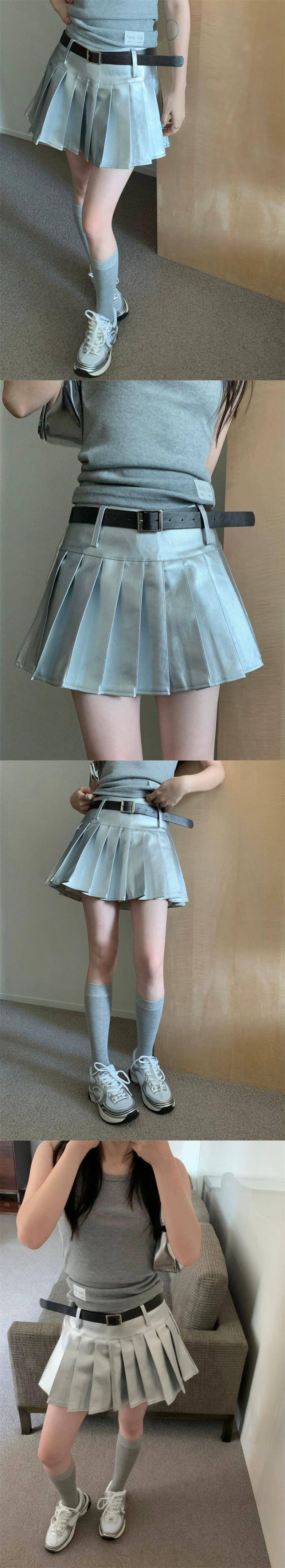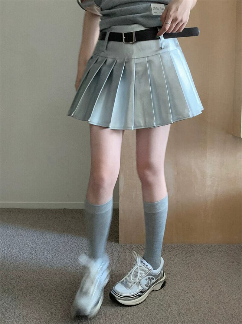 秋のシルバープリーツスカートレディース、露出防止キュロット、プチレザースカート、ハイウエストAラインスカート、ショートスカート オータム 秋物 銀 0921967780854449