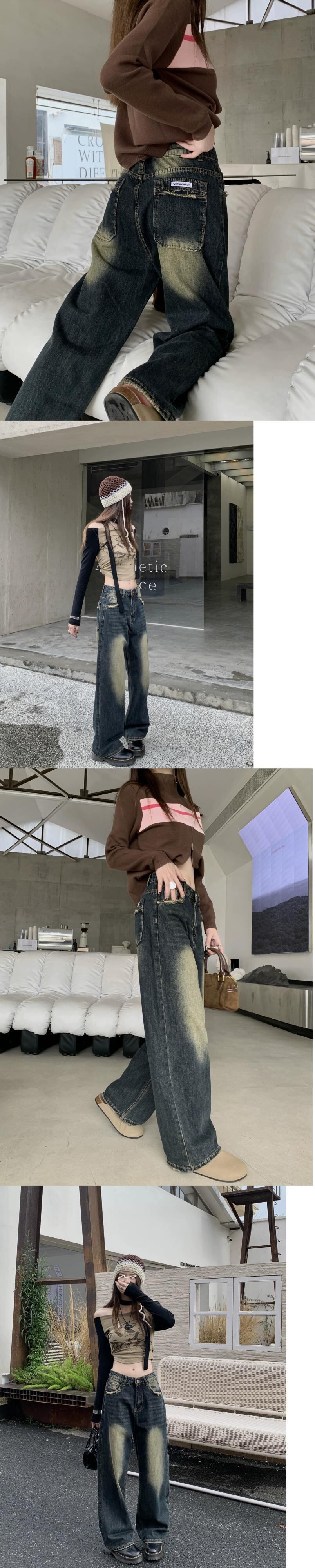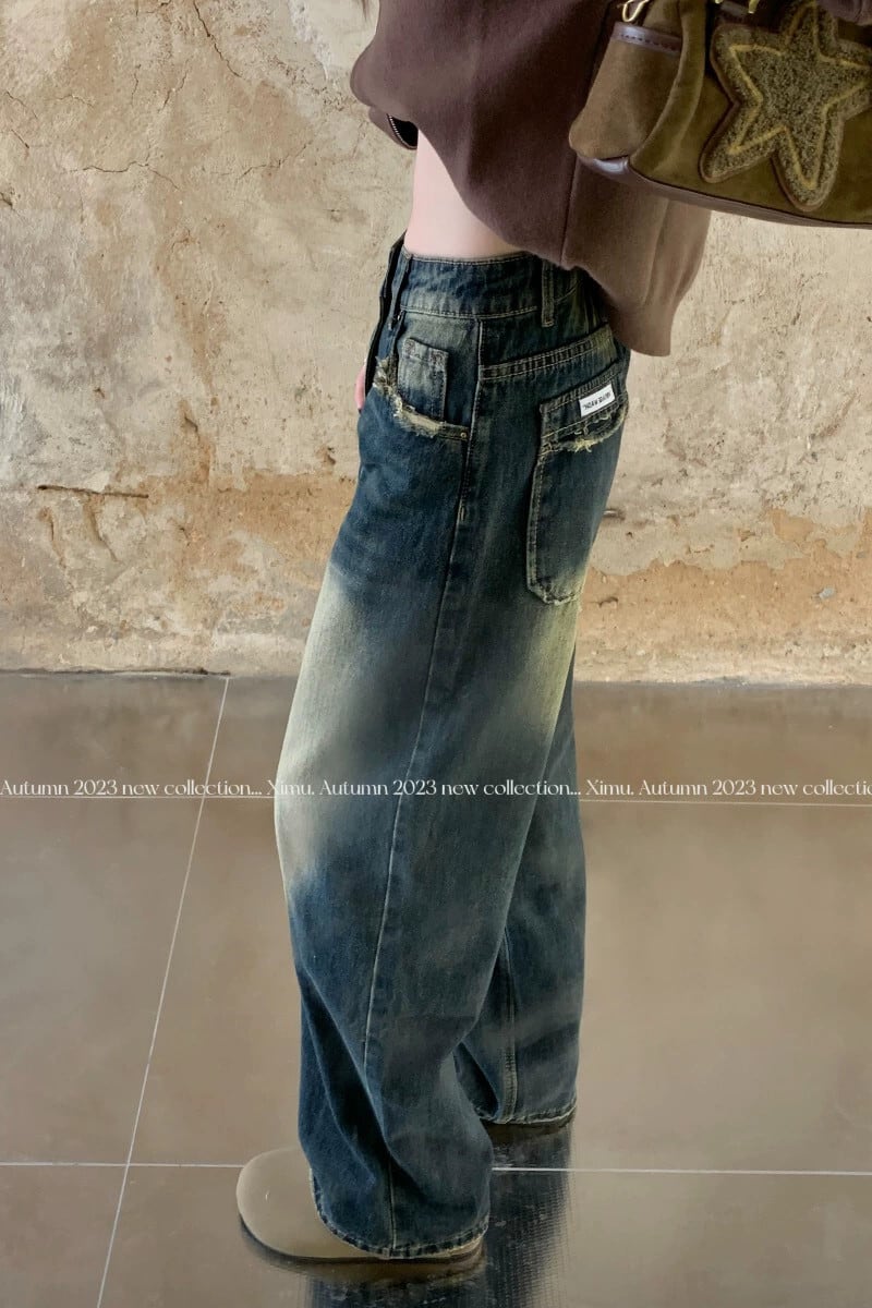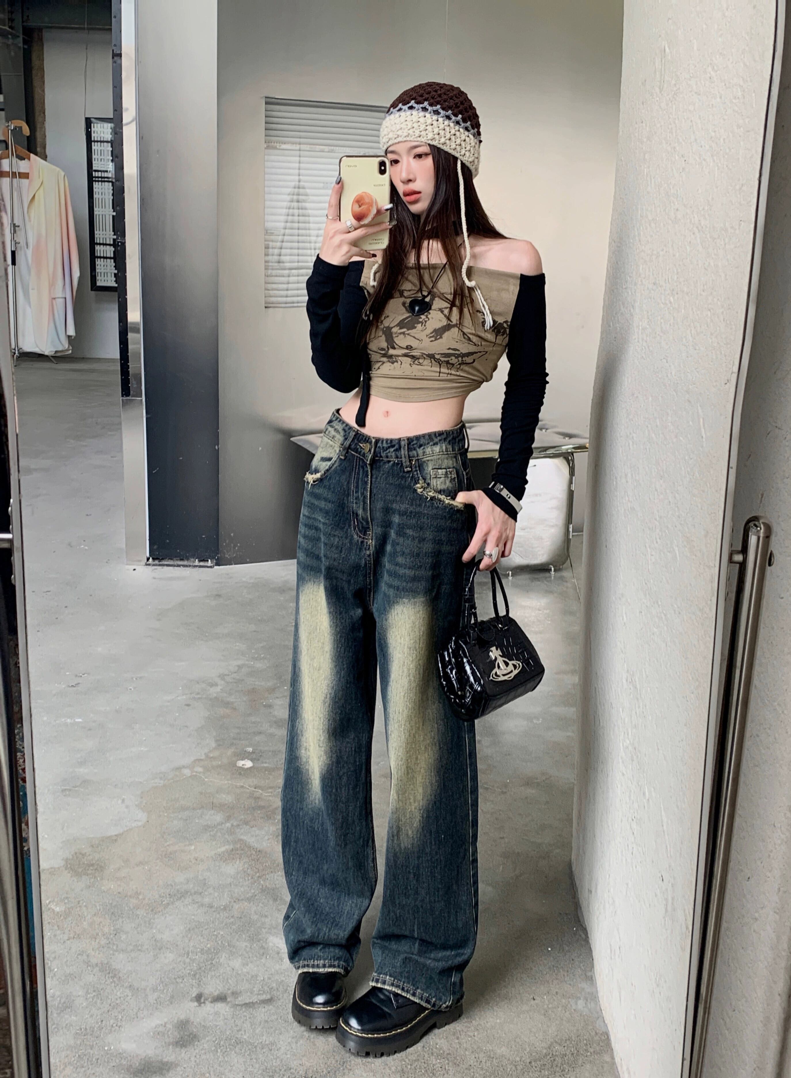 アメリカンレトロウォッシュウエストスリムジーンズレディース秋2023多用途ルーズワイドレッグパンツ オータム 秋物 ワイドパンツ 092194917764850