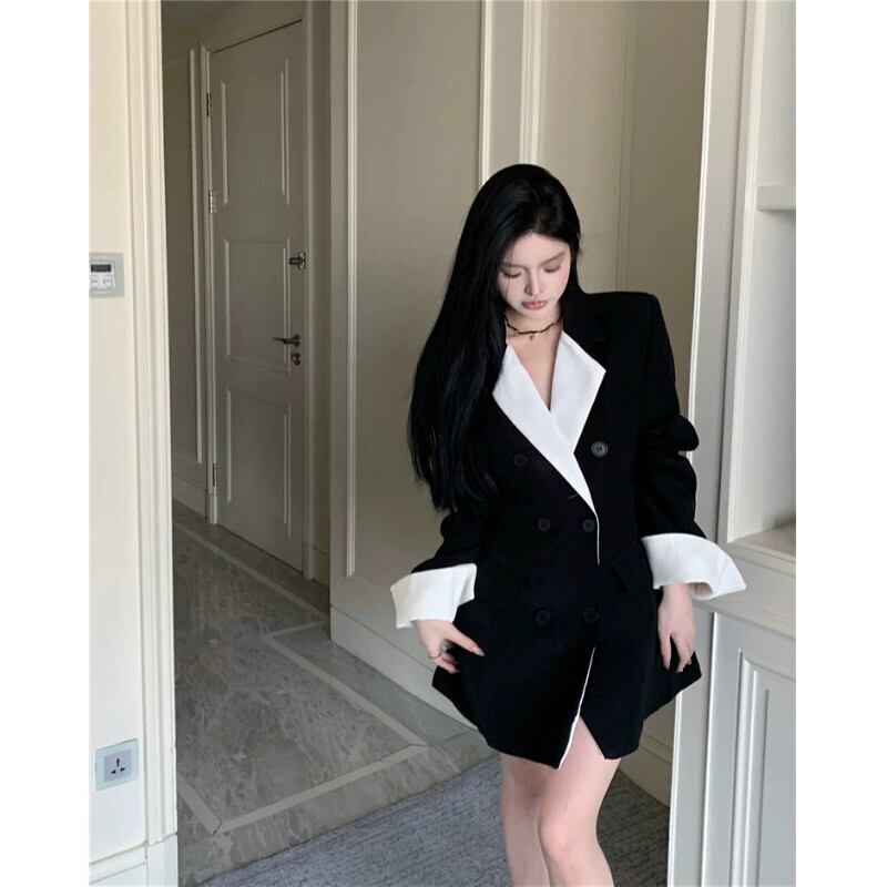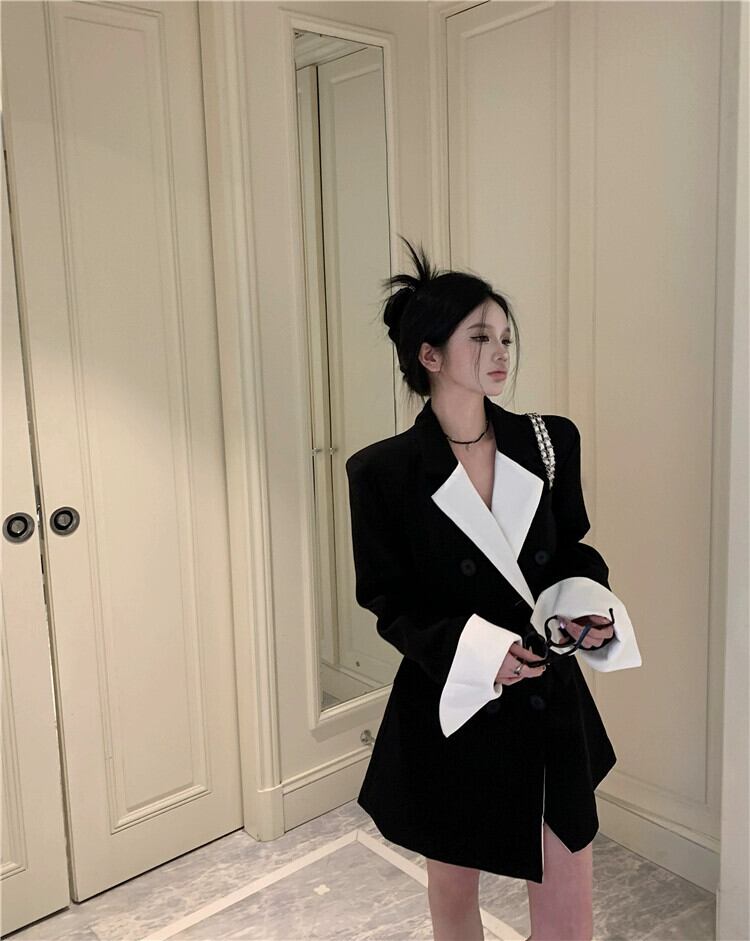 -end気質対照的な色の長袖スーツジャケット女性秋2023新しい気質ウエスト痩身スーツトップ ロング オータム 秋物 0921947136749183
