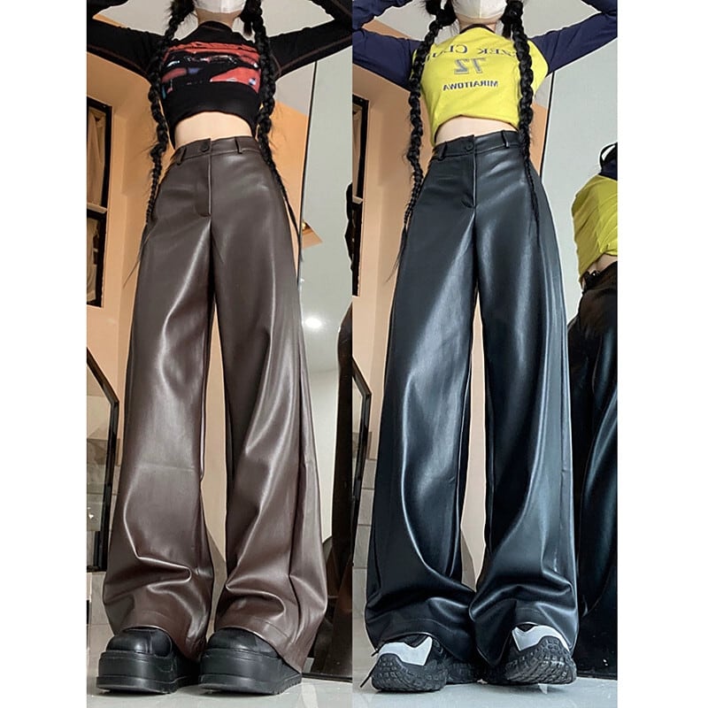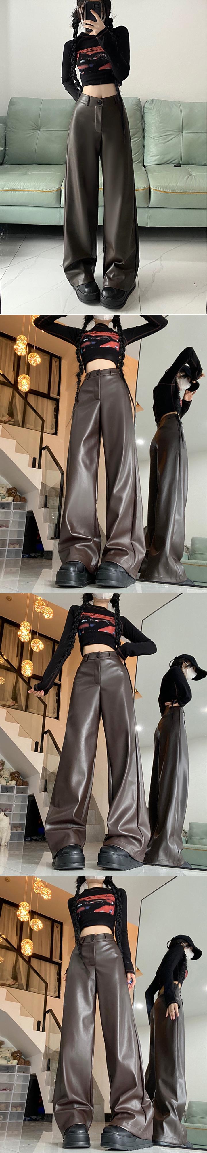 レトロシンプルなソリッドカラーパンツ女性の秋 2023 レザー Pu レザーパンツスリムウエストズボントレンディ オータム 秋物 0921920184767444