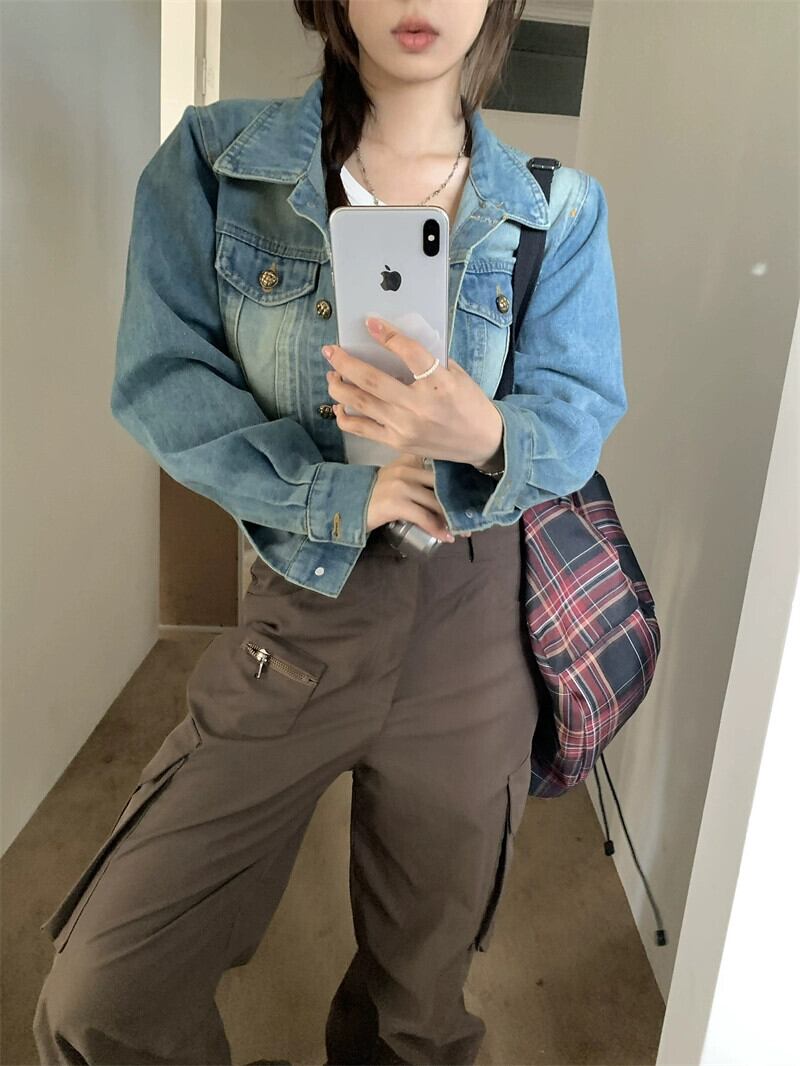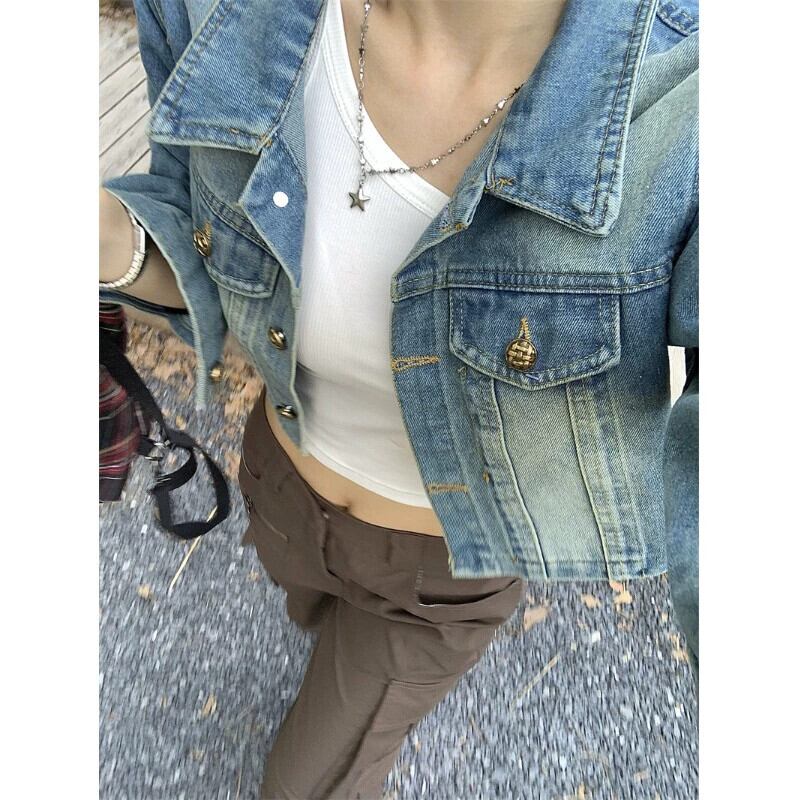 スタイルレトロダメージデニムジャケット女性の秋 2023 新しいファッションニッチショートルーズカーディガントップ オータム 秋物 0921979061551573