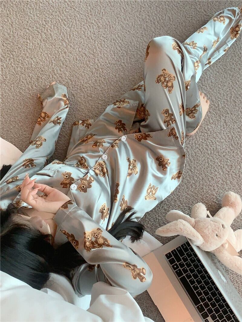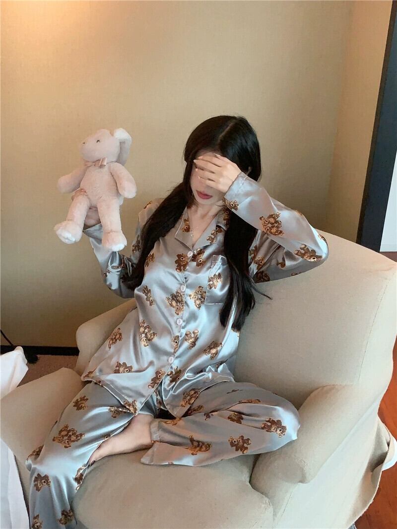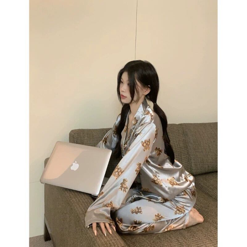 かわいいインターネット有名人のパジャマセット女性秋 2023 新しい長袖カーディガントップスパジャマホーム服ツーピーストレンディなセット ロング 大人ガーリー スウィート キュート カジュアル オータム 秋物 0921947456981869