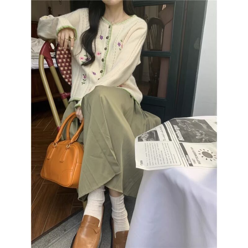 レトロ花刺繍長袖セータージャケット女性秋 2023 新デザイン多用途ショートカーディガントップ ロング レッド オータム 秋物 フラワーデザイン 0921949559328164