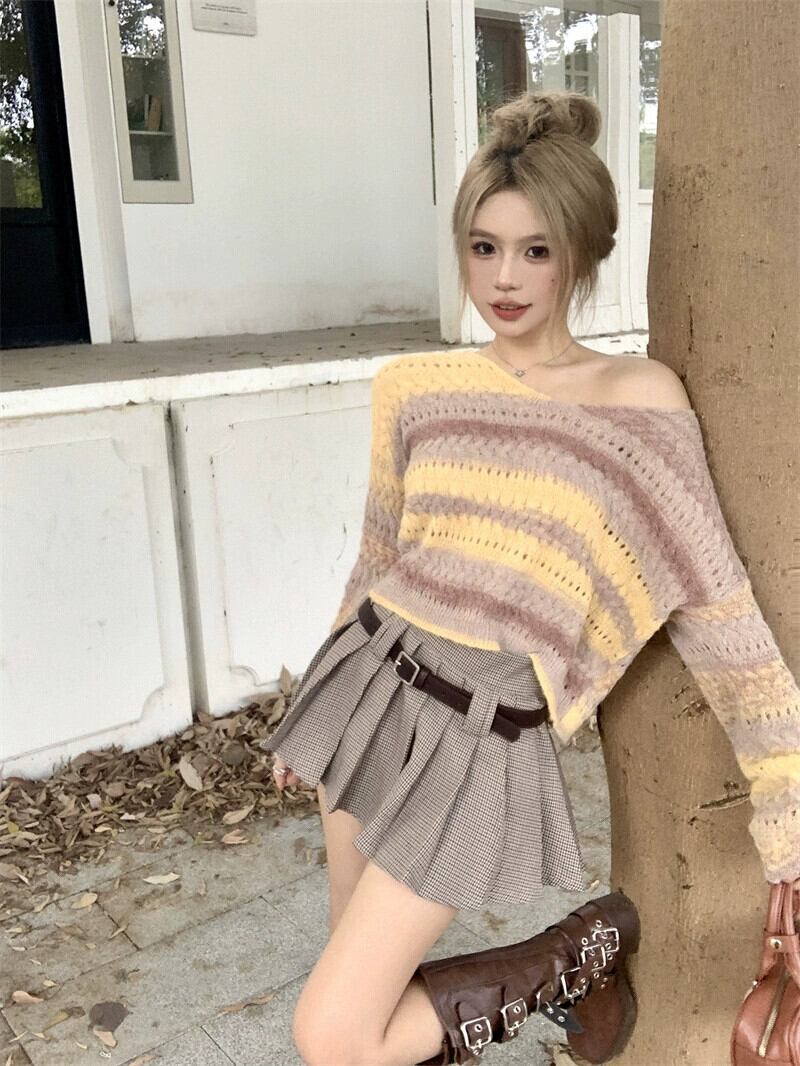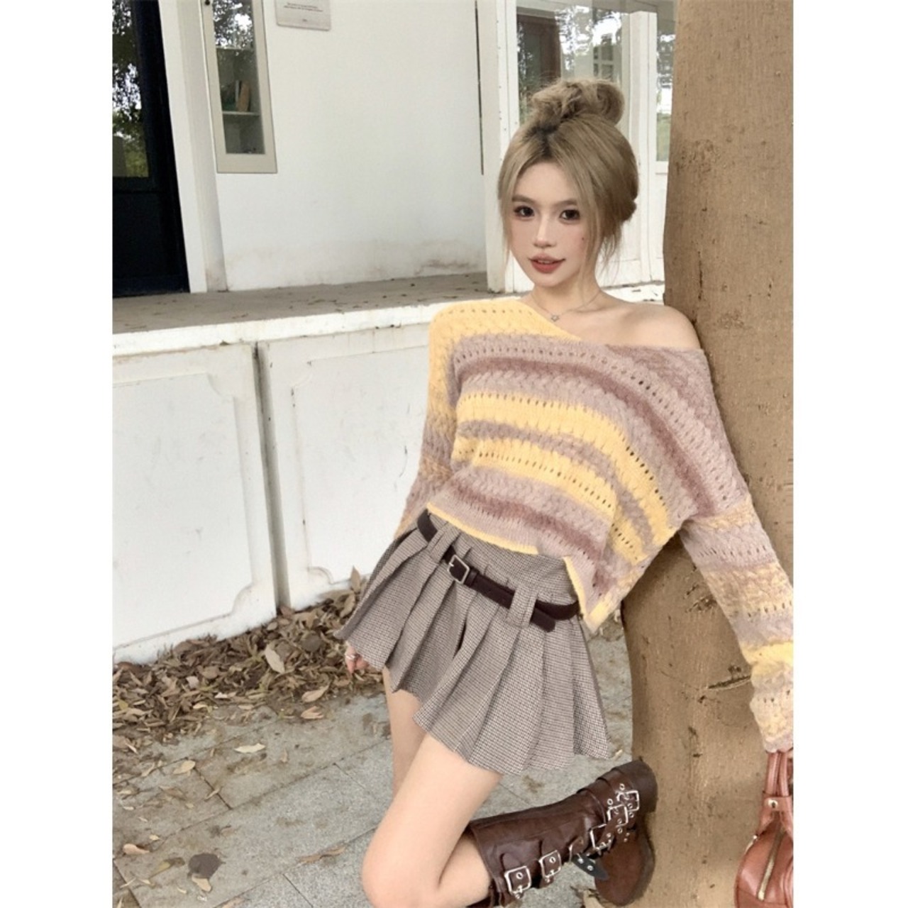 有能 V ネック怠惰なスタイルのグラデーション長袖セーター女性秋 2023 新デザイン中空痩身セーター ロング オータム 秋物 Vネック 0921942316400017