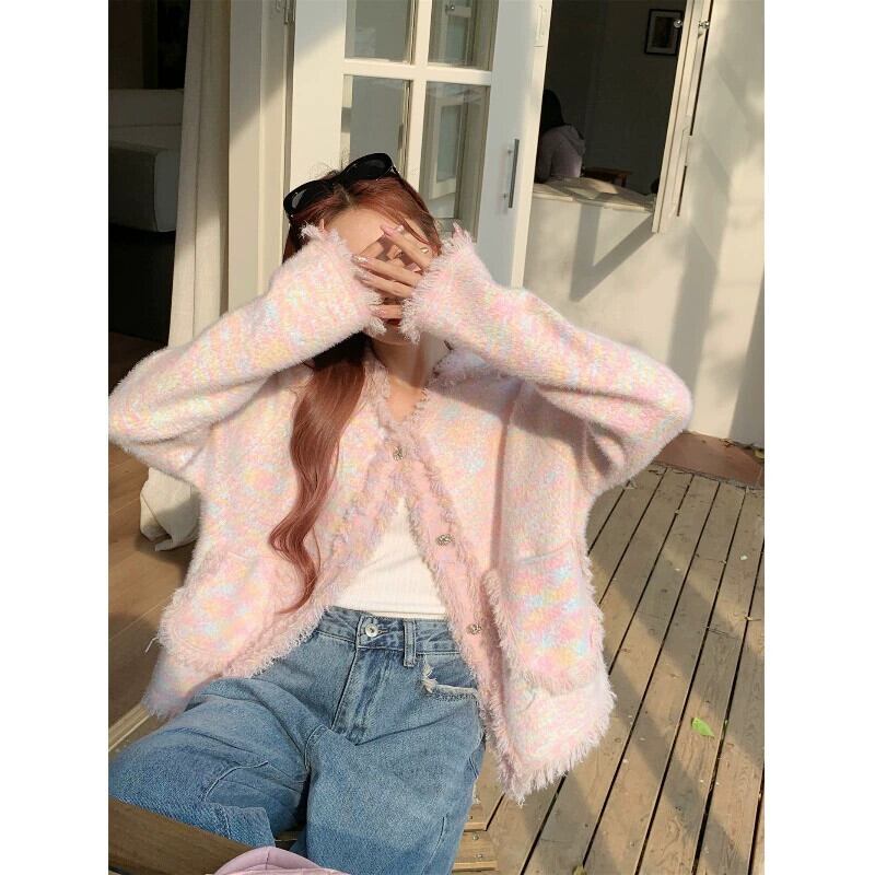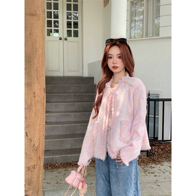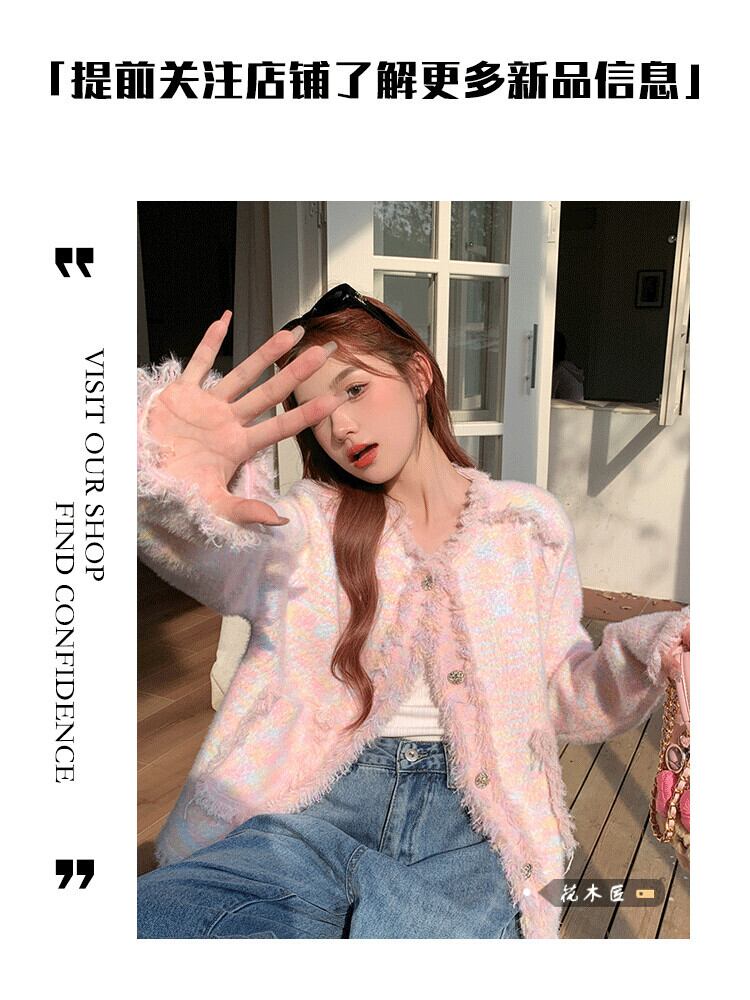 気質小さな香りのテルショートコートの女性の秋 2023 新しい甘くてスパイシーな色のルーズセーターカーディガントップ 大人ガーリー スウィート キュート カジュアル オータム 秋物 0921943825954327