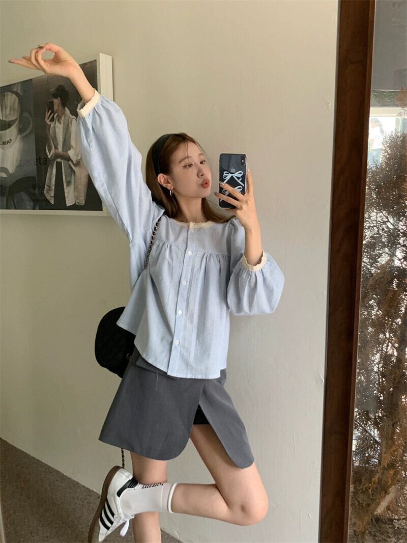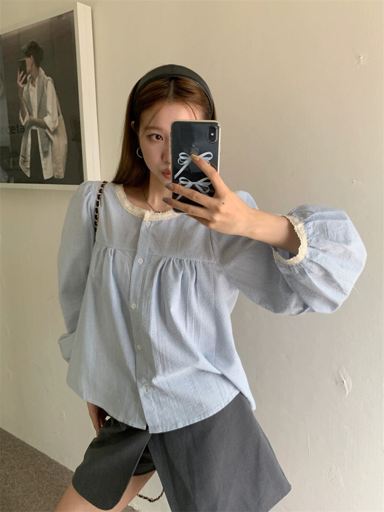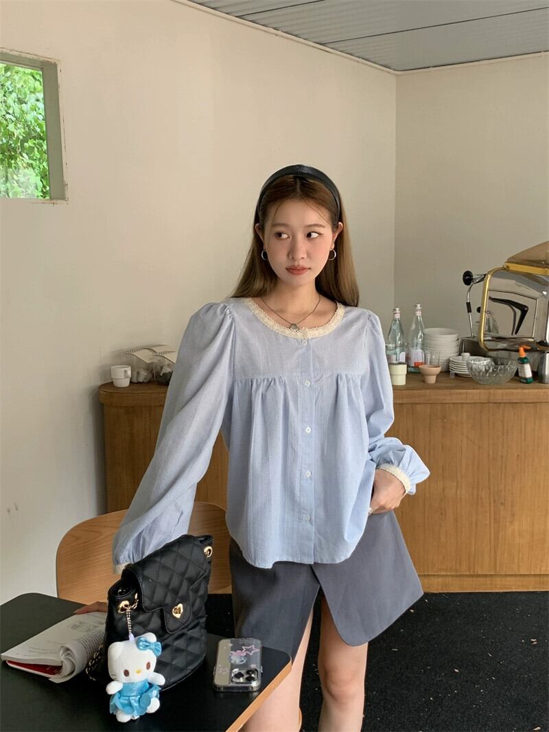 スタイル優しいスタイルレース長袖シャツ女性の 2023 秋の新しいルーズで甘い年齢を減らす人形シャツシャツ ロング 大人ガーリー スウィート キュート カジュアル オータム 秋物 0921959791356800