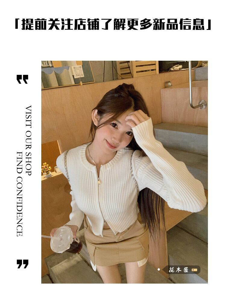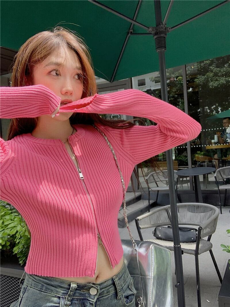 セクシーなホットガールラウンドネック長袖セーター女性の初秋 2023 スタイルの気質ショートスリムスリムジッパートップ ロング オータム 秋物 Oネック 09219996325217