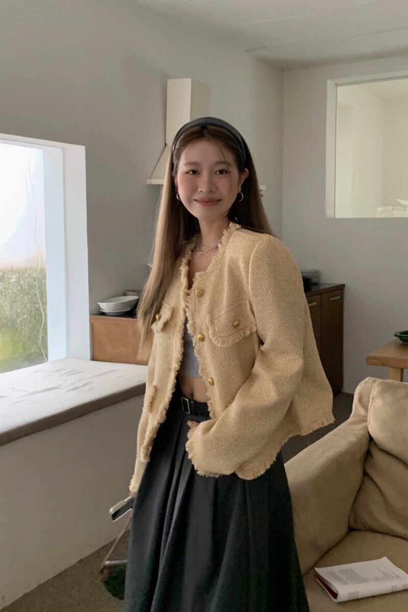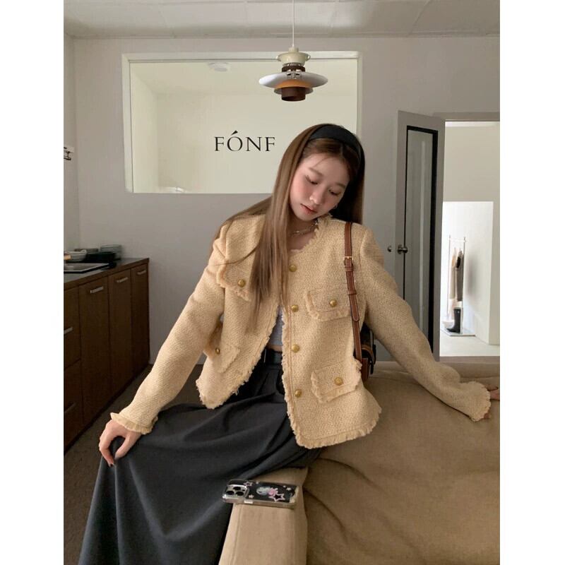 気質スモールフレグランススタイル長袖ラウンドネックジャケットレディース2023年初秋新作多用途ルーズ痩身シングルブレストトップ ロング オータム 秋物 Oネック 0921970134539480