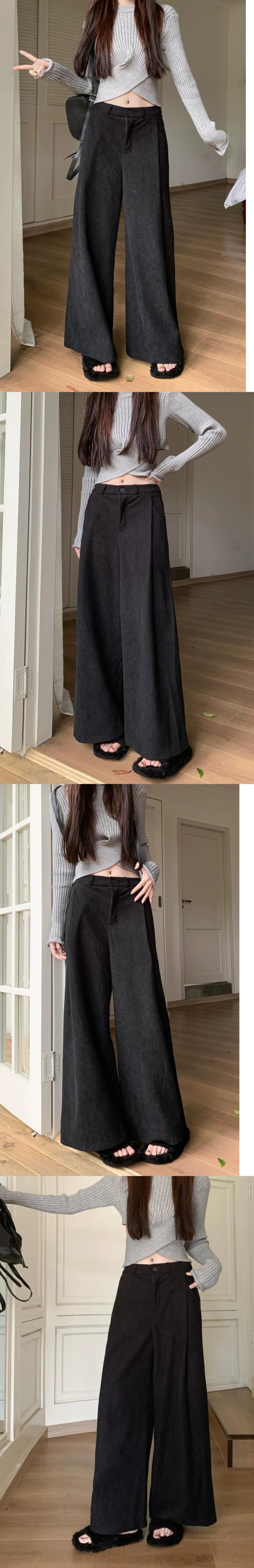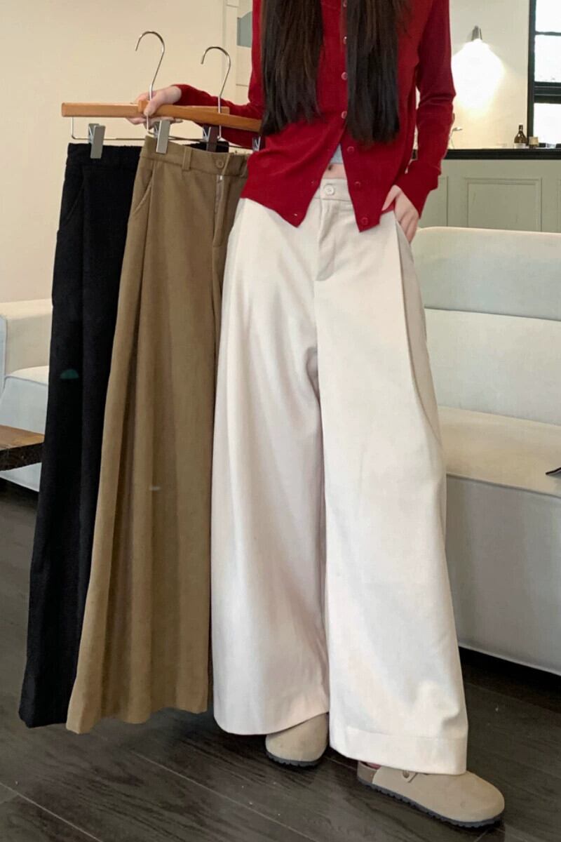 エイブル コーデュロイ ワイドレッグ パンツ レディース 2023 秋 ドレープ ルーズ ウエスト スリム 厚みのある ロング パンツ オータム 秋物 ワイドパンツ 0921938487619150