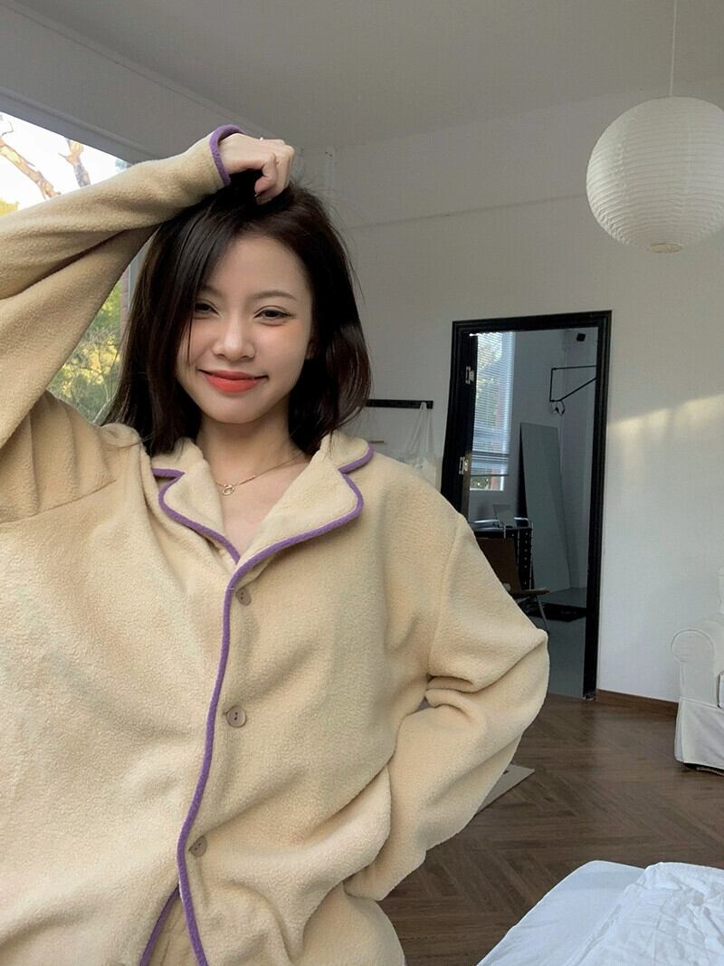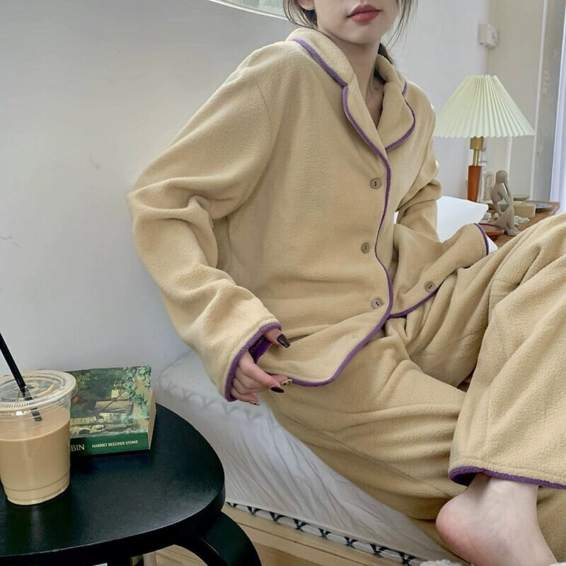 色:グレーのコントラストブルーのジャケットスーツ,アプリコットパープルパジャマセット