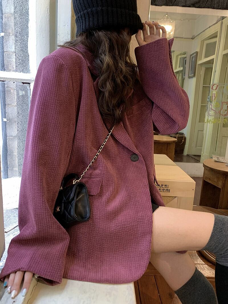 スタイルコーデュロイスーツジャケット女性秋 2023 新デザインミッドレングスルーズスリムカーディガンスーツ オータム 秋物 0921989354616263