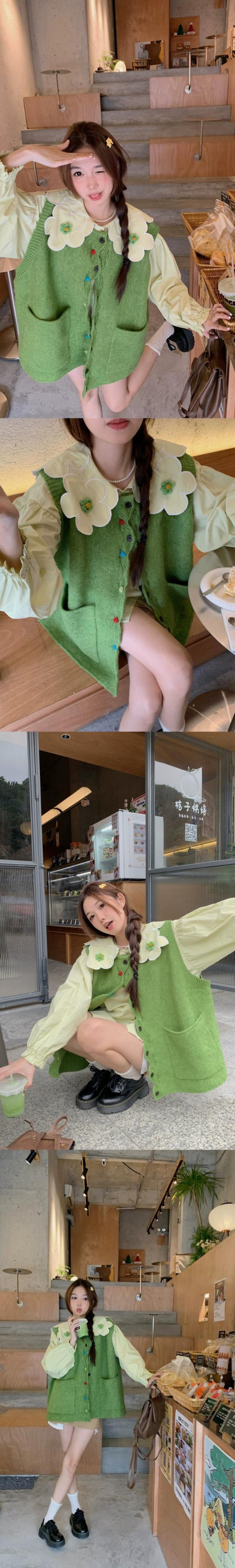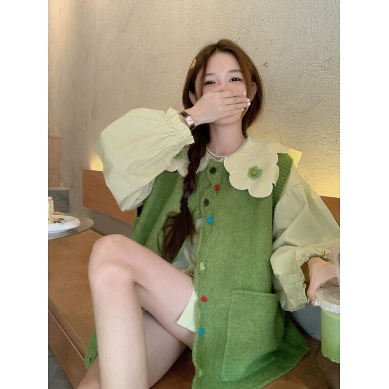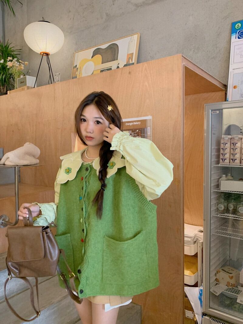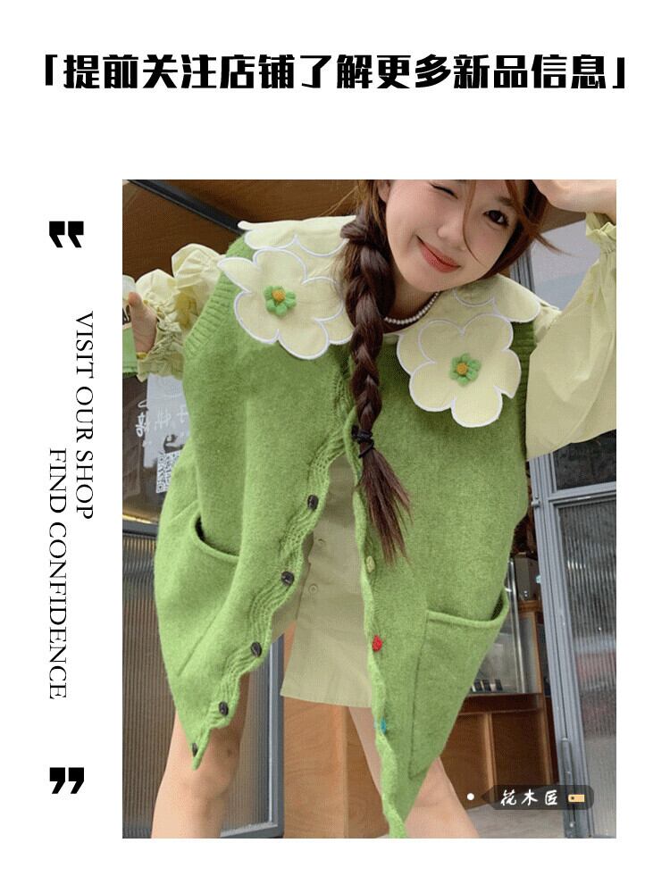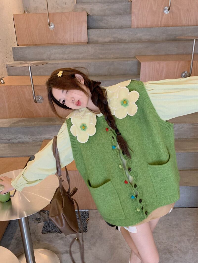 ソフトでワックス状の老化防止フラワーベスト女性の 2023 秋の新しい緩い痩身カラフルなボタンニットベスト オータム 秋物 フラワーデザイン 092197313699775