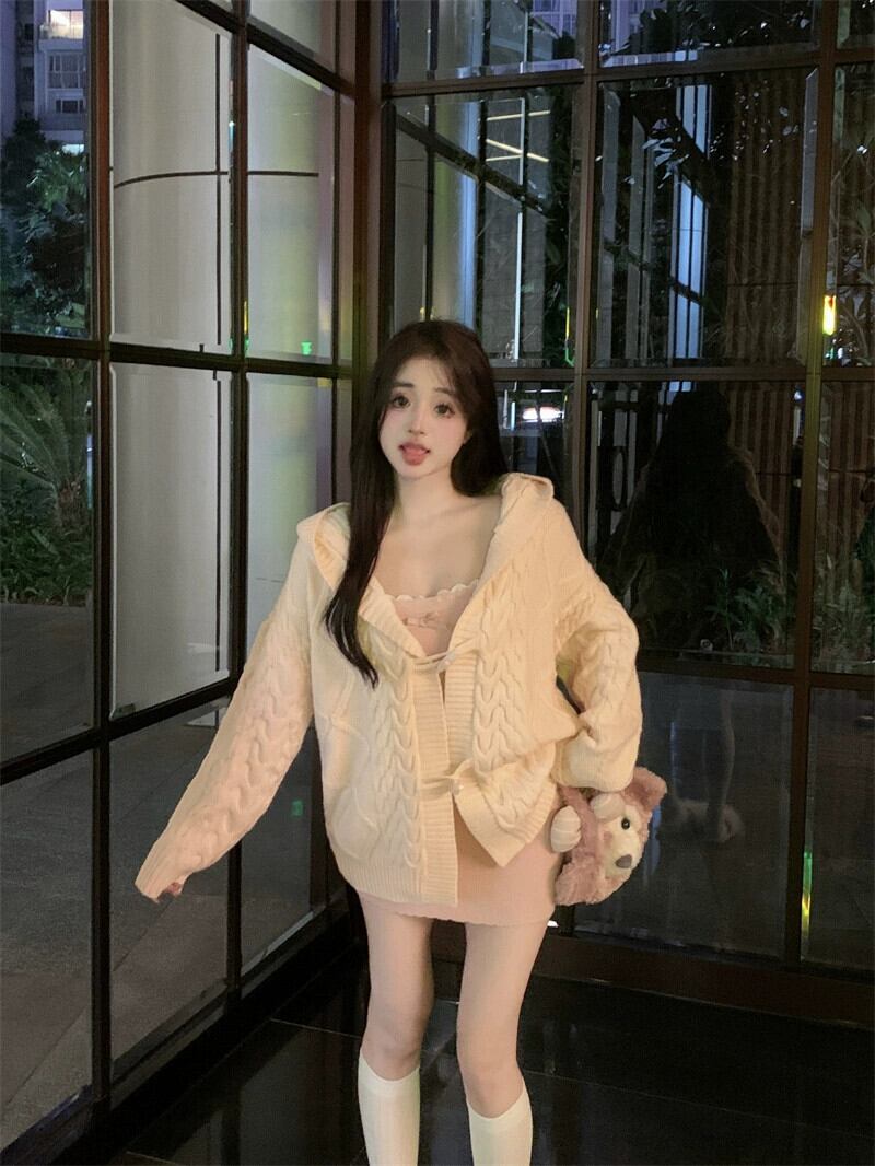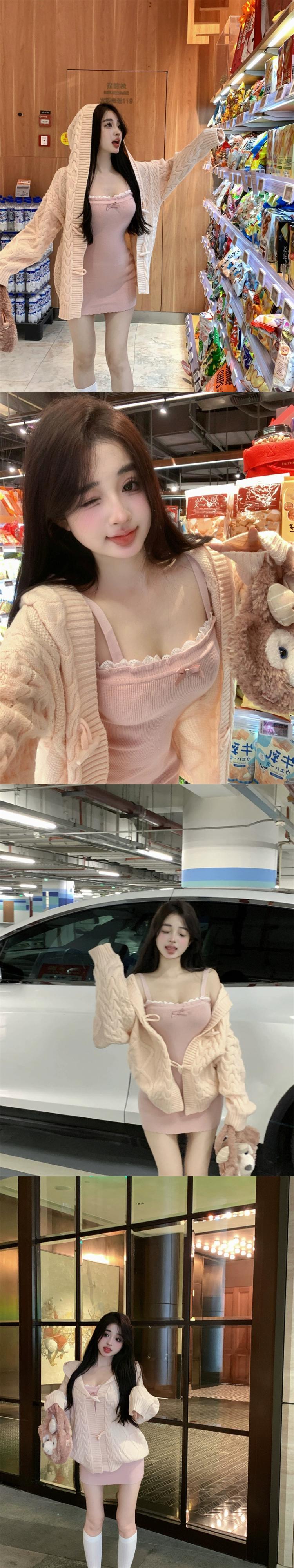 Pure Desire 恋人 ピンク ツーピース レディース 秋 2023 セーター ジャケット ニット ヒップ ドレス セット 大人ガーリー スウィート キュート カジュアル オータム 秋物 0921962095243612