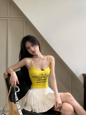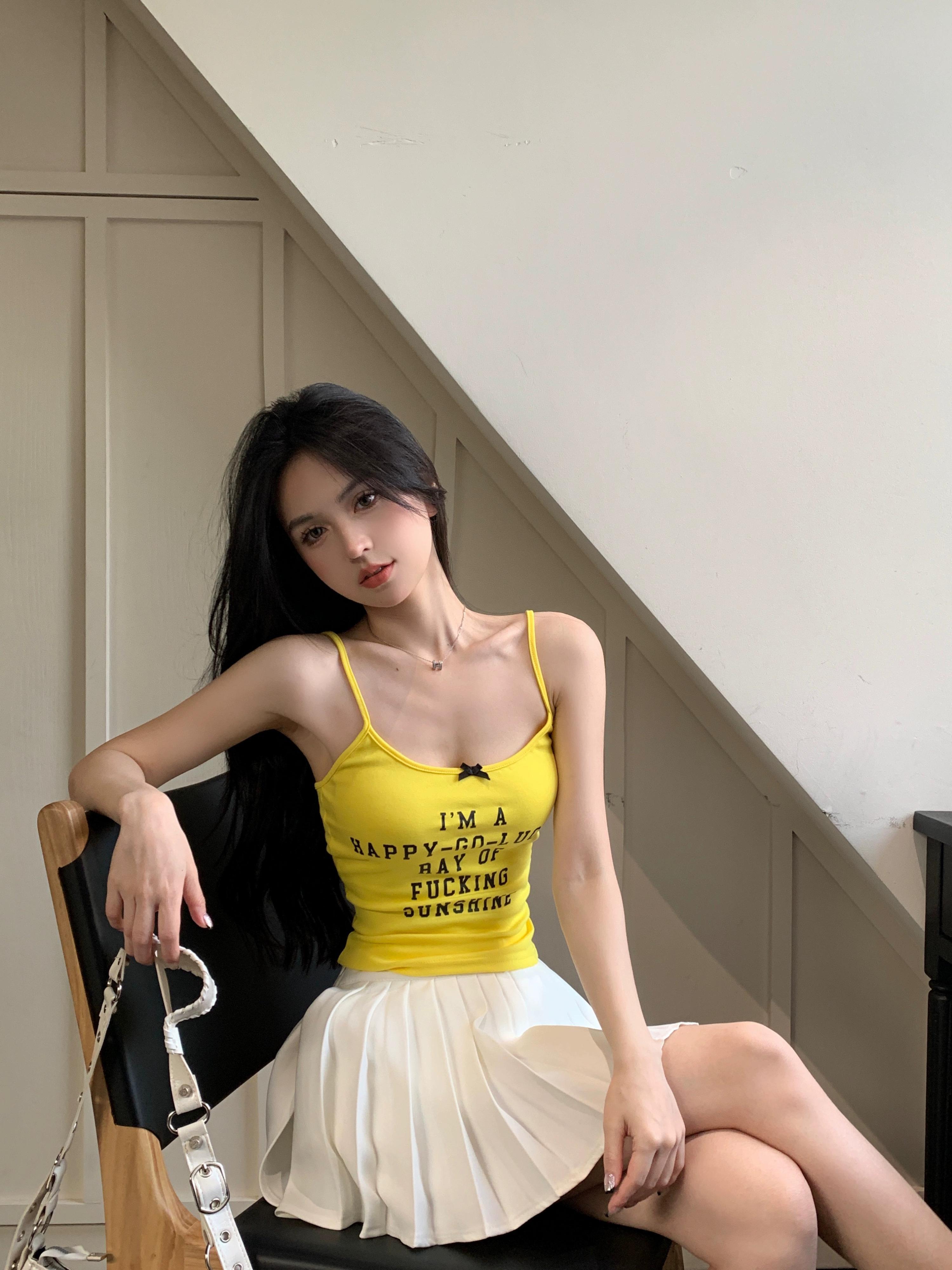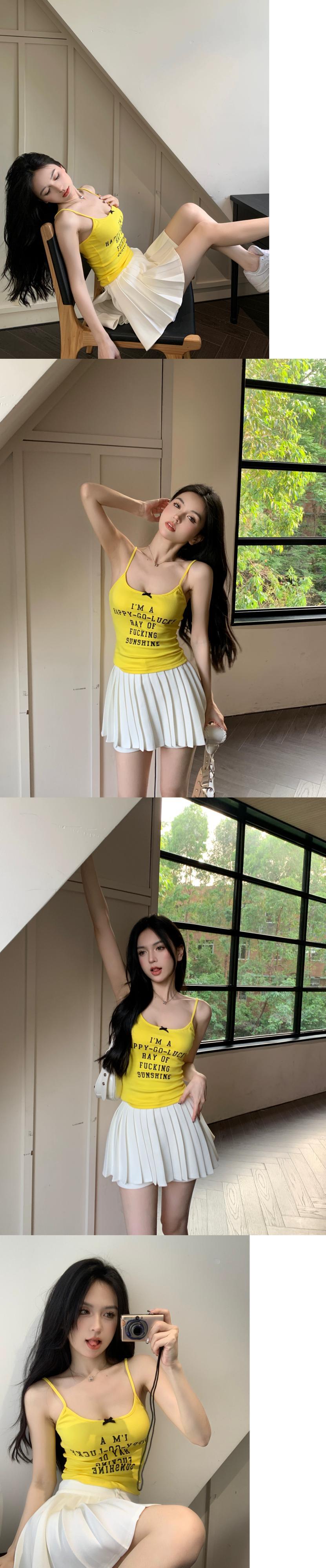 アメリカの恋人イエローキャミソール女性の夏の 2023 新しいセクシーなプリントレタースリムフィットショートトップ 大人ガーリー スウィート キュート カジュアル サマー 夏物 0921975848852927