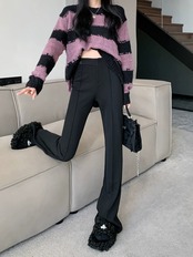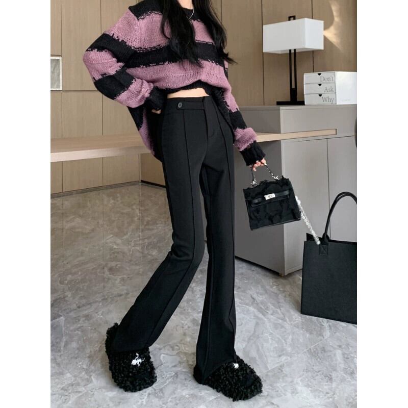 春の黒のマイクロフレアカジュアルパンツ、スリムフィット、ハイウエストストレートパンツ、馬蹄パンツ、フロアレングスのスーツパンツ レッド ブラック スプリング 春物 0921931166963047
