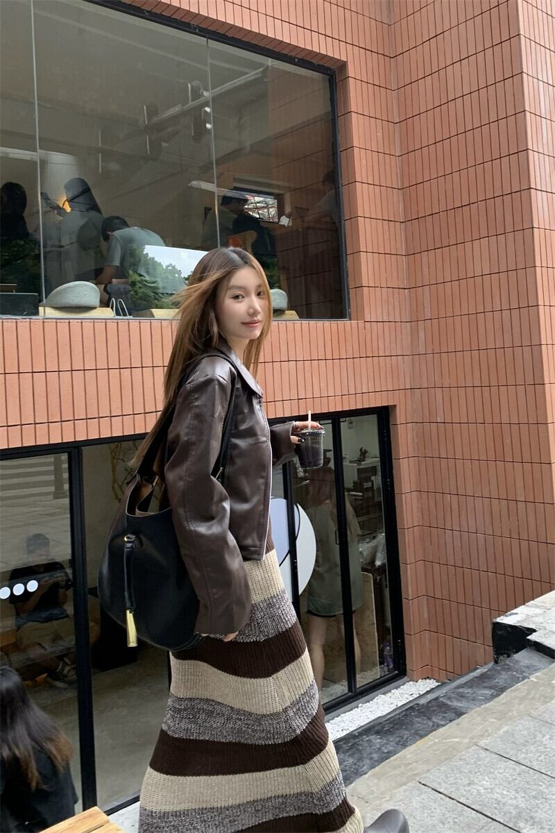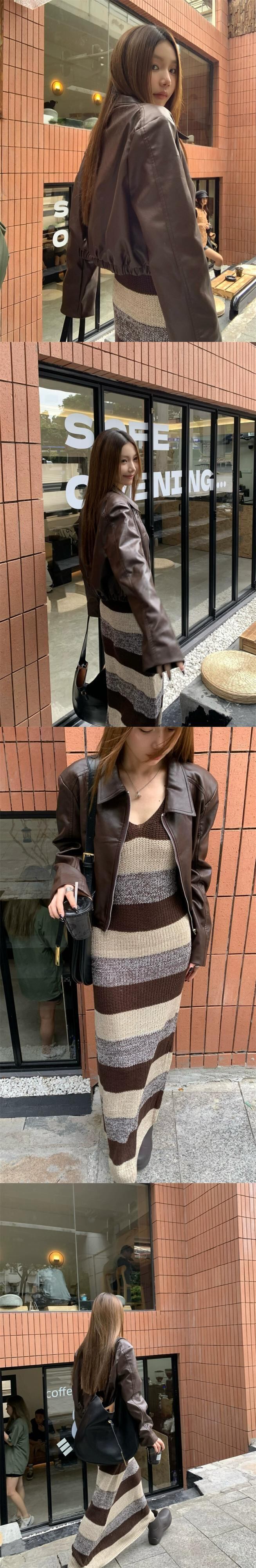 アメリカンレトロストライプニットサスペンダードレス女性春 2024 新しい気質スリムスリムミドル丈スカート スプリング 春物 0921990848413726