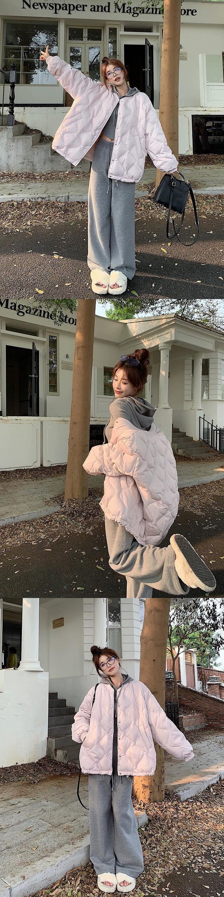 色:パリグレーのトップス,パリグレーのパンツ,ライラックコットンジャケット,クリームの米綿服