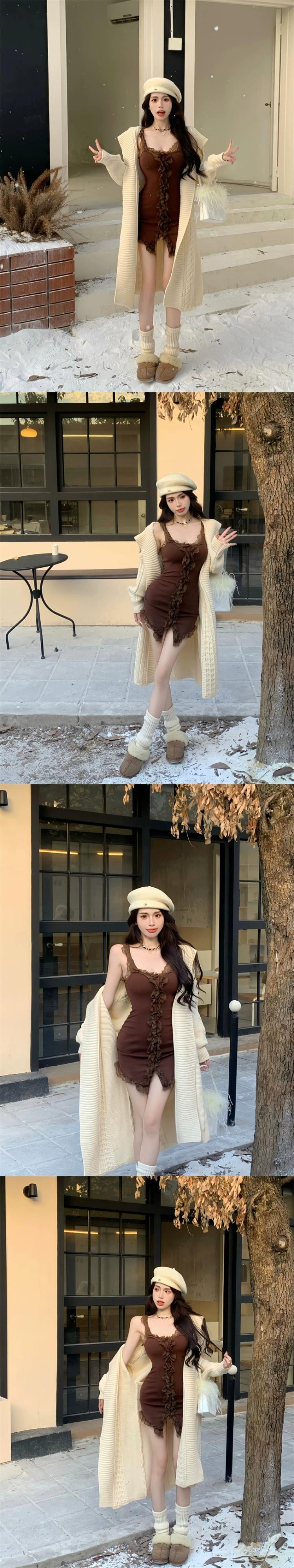 純粋な欲望ホットガールレーススプライシングドレス女性の春 2024 スリムフィットボトリングニットヒップカバーベストショートスカート スプリング 春物 0921949954979130