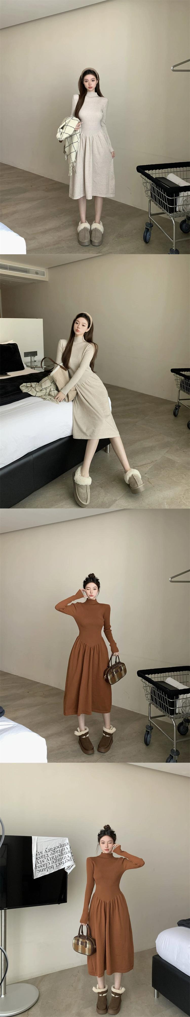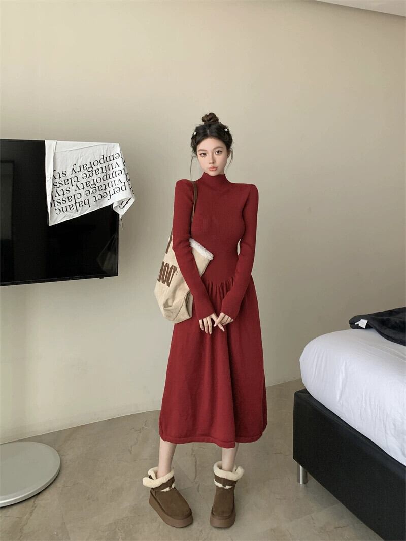ハーフタートルネック長袖ニットドレス女性の秋と冬の 2024 新しいインナースカートウエスト痩身 a ラインロングスカート オータム 秋物 ウィンター 冬物 Aライン 0921924463831453