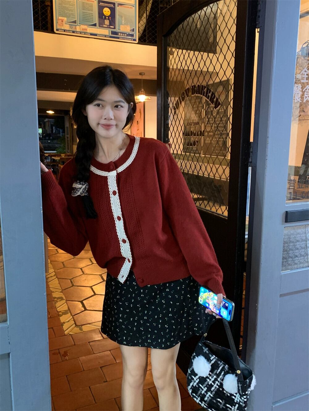 レーススプライシング長袖セーターの女性の春 2024 新しいソフトとワックスのようなショートルーズスリムセータージャケット ロング スプリング 春物 0921917602739213