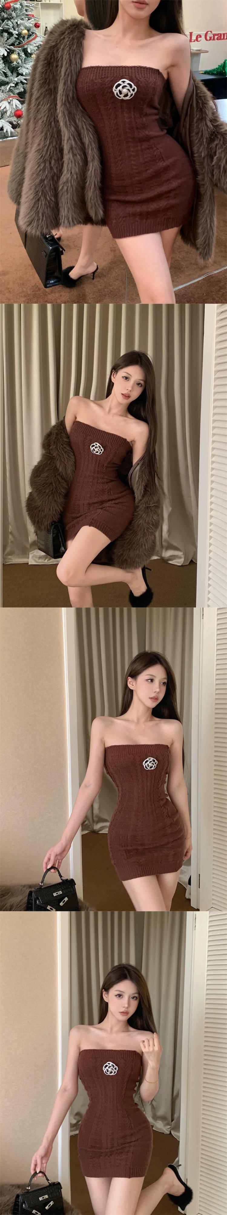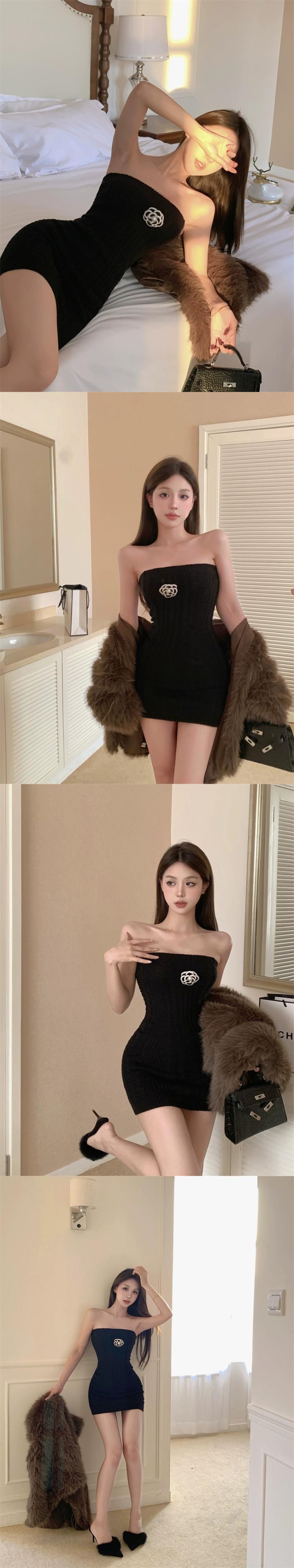セクシーなニットチューブトップドレス女性春 2024 新しい気質痩身ショートヒップスカート スプリング 春物 0921967873693458