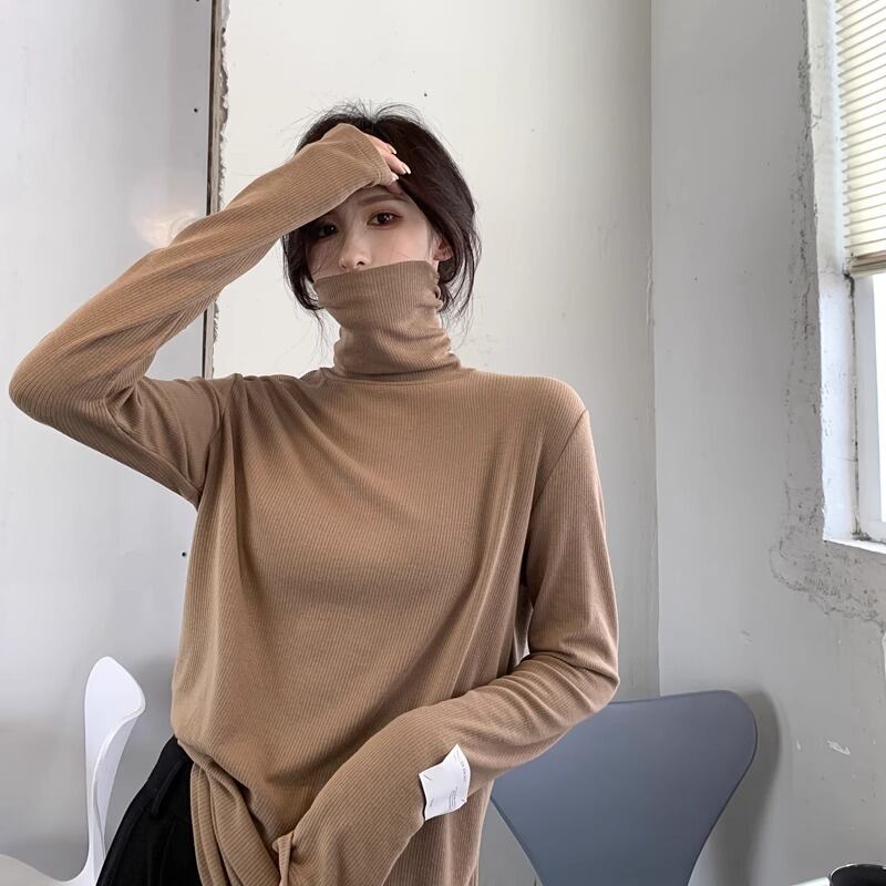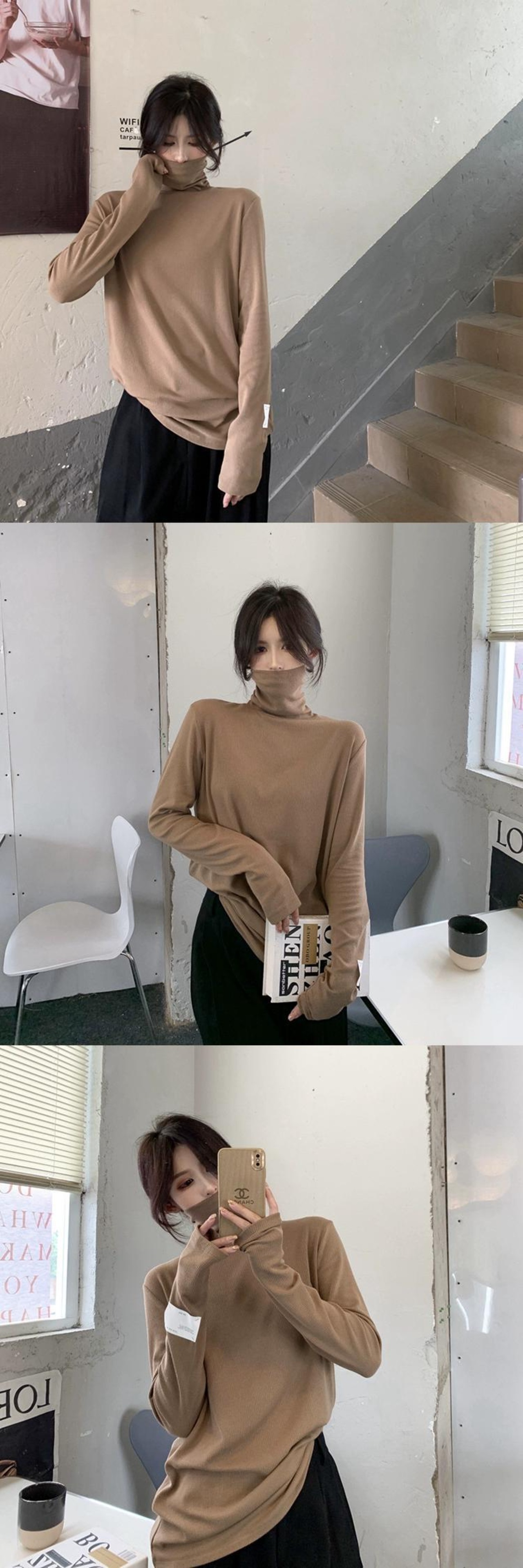 ベルベット肥厚ハイカラーピットストリップルーズ長袖 Tシャツ女性の 2024 年春の新しい多目的痩身ボトミングシャツトップ ロング スプリング 春物 092193344169765